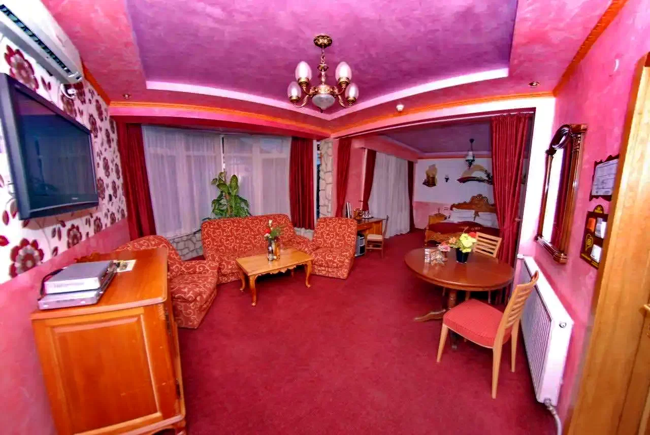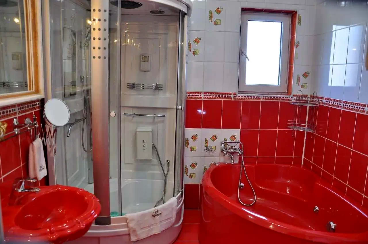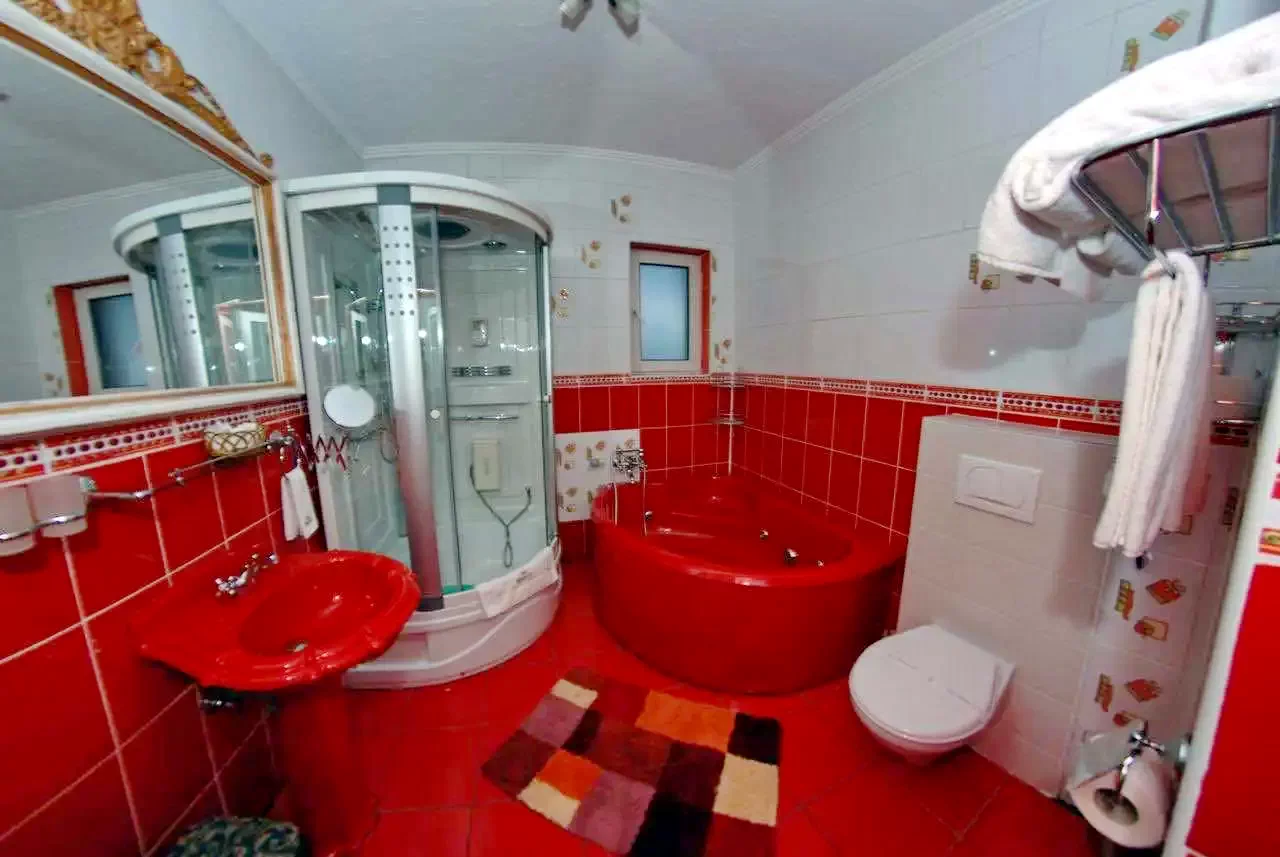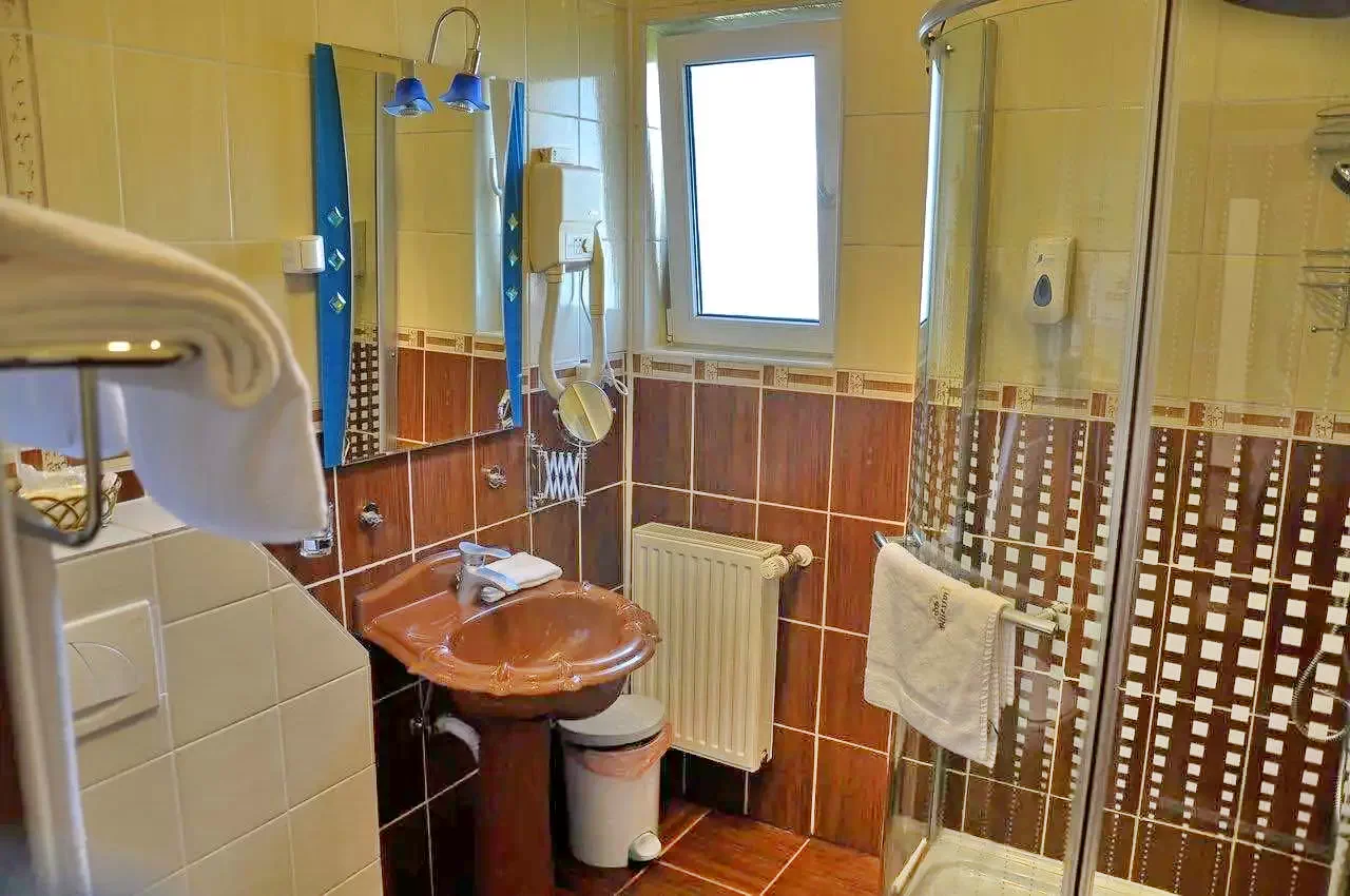 - A fürdőszobák hidromasszázs zuhanykabinokkal, hajszárítóval, márvány szaniterekkel, illetve az apartmanokban peszgőfürdővel felszereltek.