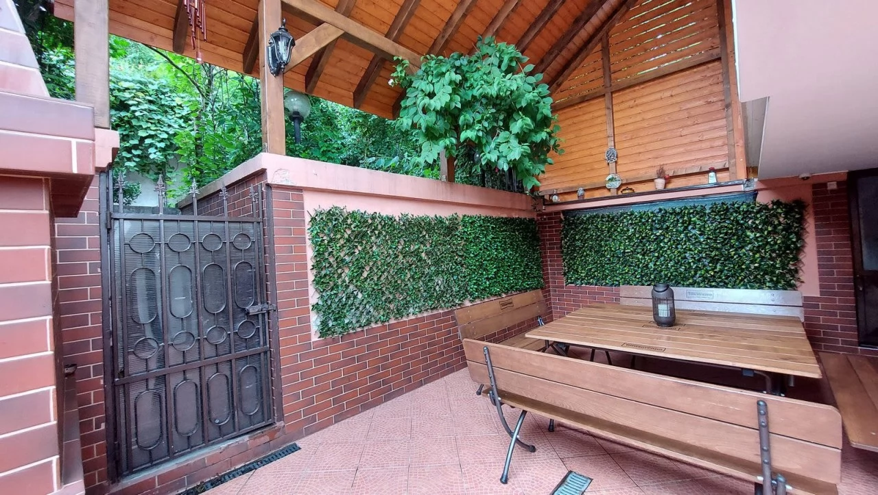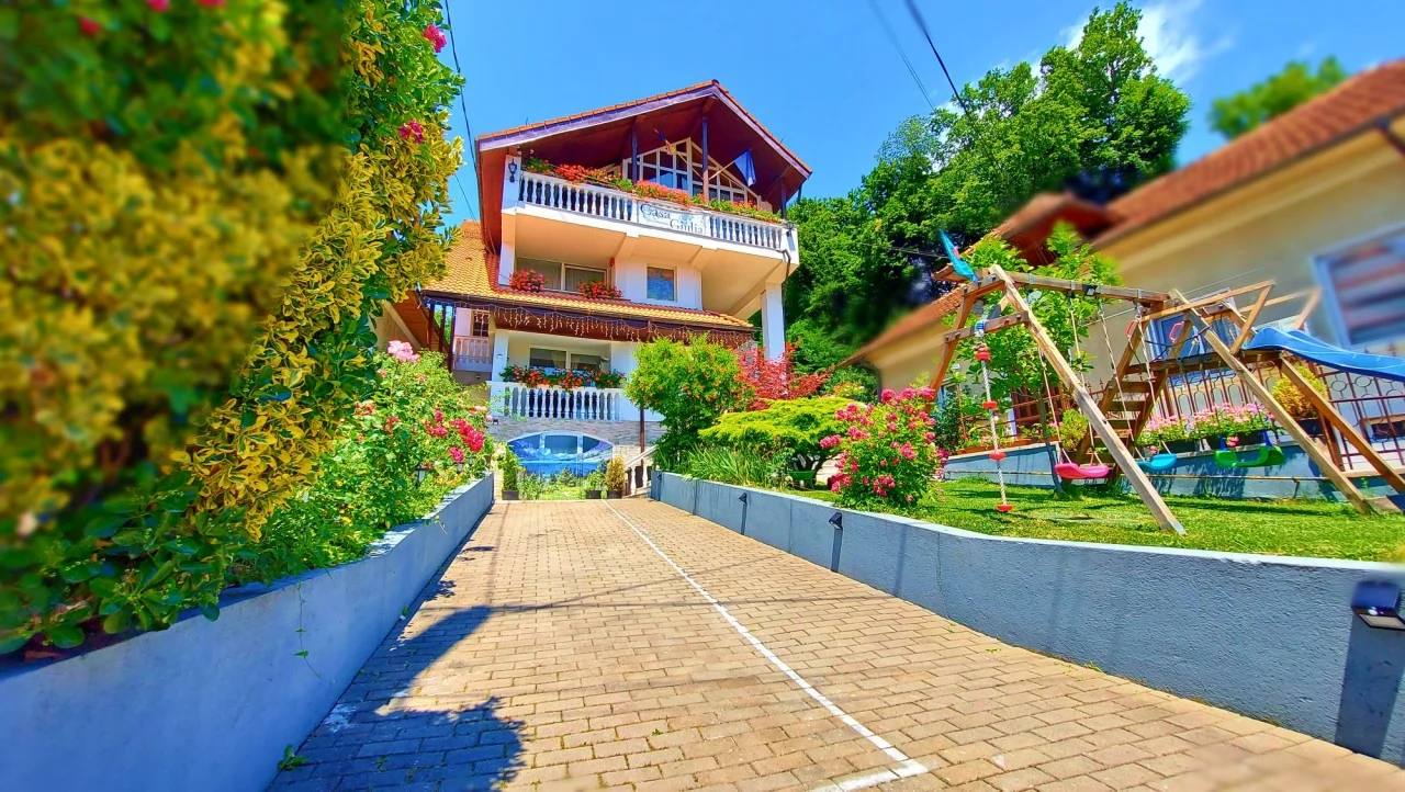- A villa-különböző szabadidős lehetőségeket kínál, többek között teraszt grillezővel, játszóteret hintákkal és csúszdával, valamint egy körülbelül 250 négyzetméteres zöldterületet.