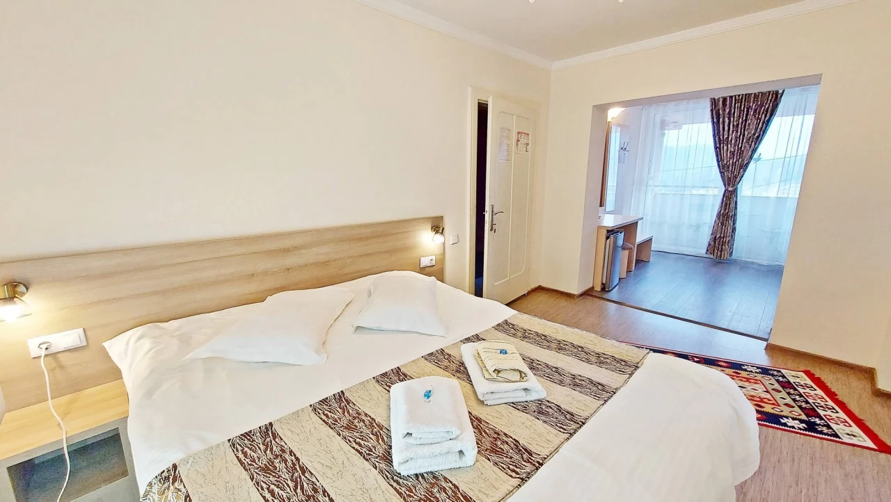 - Minden szoba saját fürdőszobával, mini bárral és 80-130 cm-es Samsung Smart Tv-vel van felszerelve. Emellett minden szobához ingyenes Wi-Fi hozzáférés tartozik, és néhány szoba panorámás erkéllyel rendelkezik.