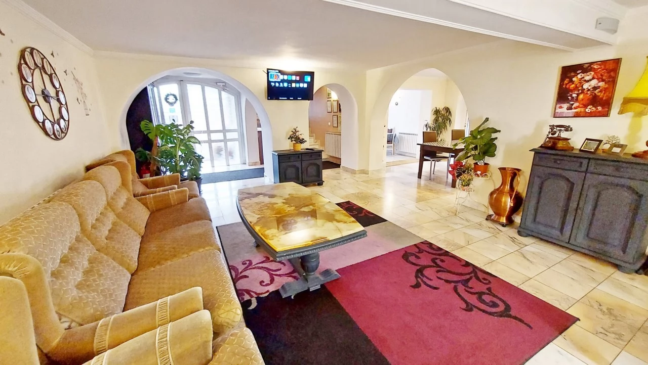 - Recepció/nappali nyitott térrel, Smart TV-vel és nagy hűtőszekrénnyel