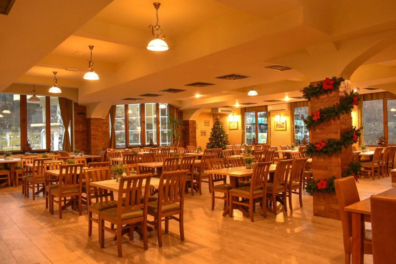 - A hotel 150 fő étterme ízletes román és nemzetközi ételeket kínál a vendégeknek. Az étterem 50 személyes az Olt folyón átnyúló hangulatos terasszal is rendelkezik, ahol kellemes időt tölthet étkezés közben a friss levegőn.