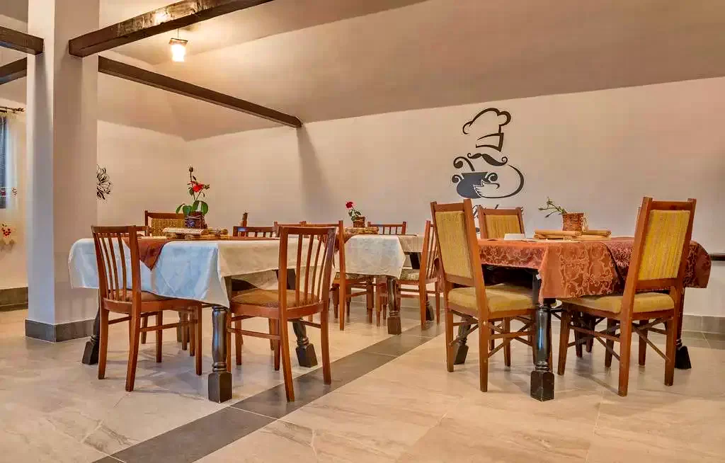 - Az étkezést a másik épületben lehet elfogyasztani (2 méterre, udvari bejárattal), vagy az önellátásra alkalmas konyhában, ahol egy 24 férőhelyes étkező is található.