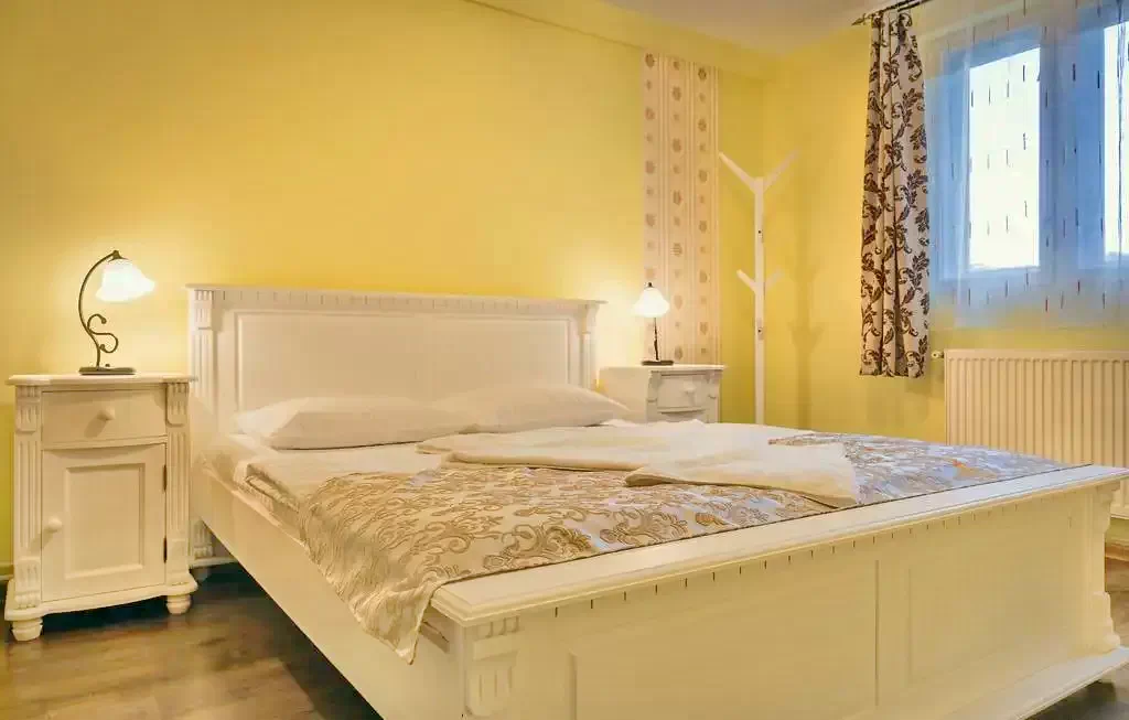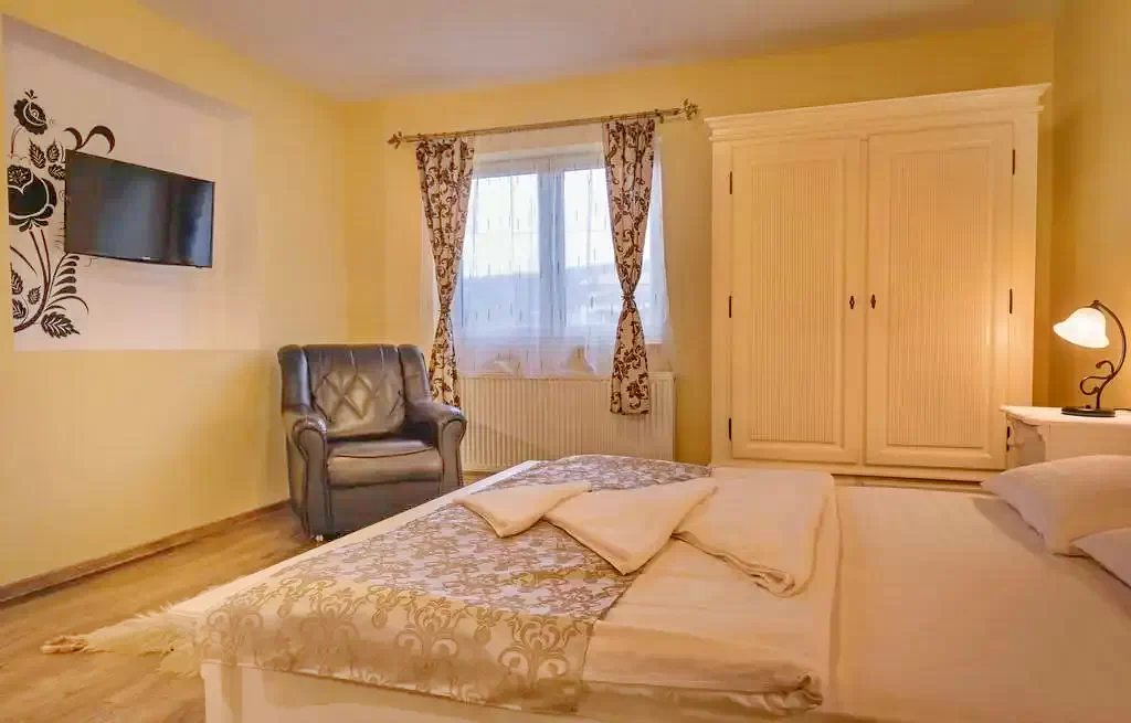 - A panzióban 8 kétágyas franciaágyas szoba, egy 4 ágyas szoba és egy apartman található, mindegyik saját fürdőszobával, LED kábeltelevízióval és egy pihenősarokkal, ahol nyugodtan fogyaszthat el egy reggeli kávét vagy egy pohár finom bort este egy régi szász faluban.