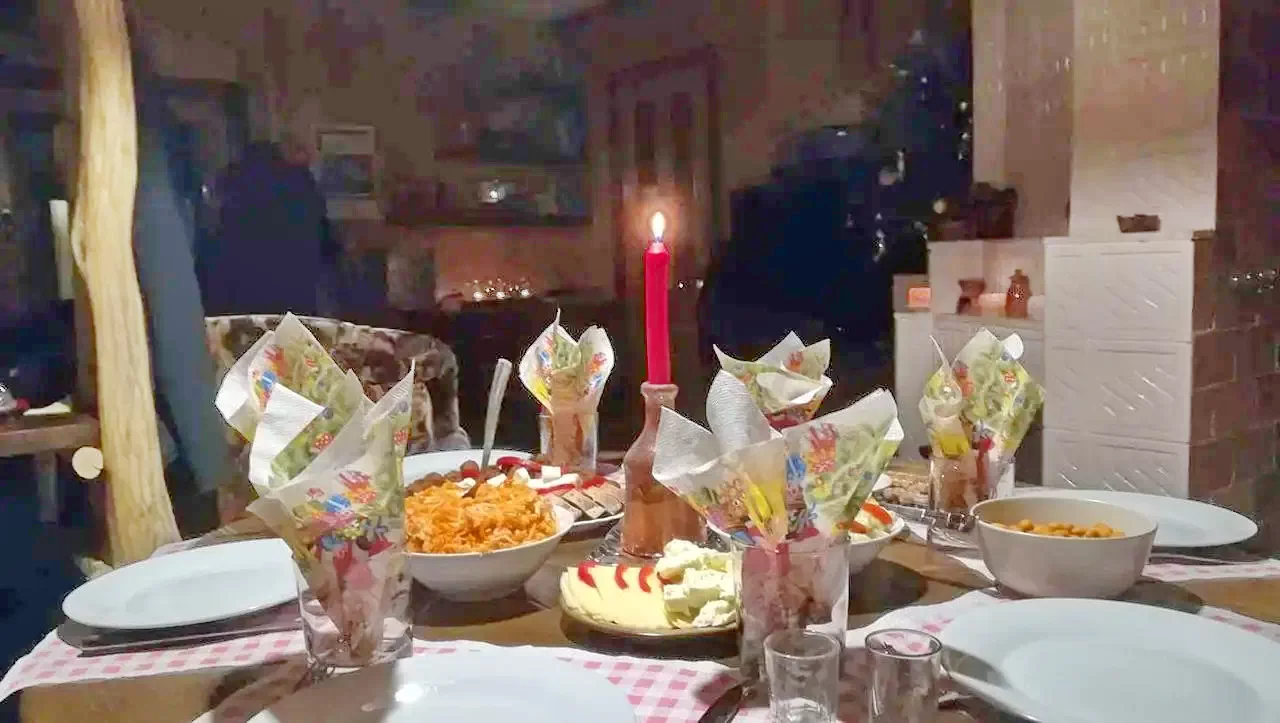 - A faházban található nappali és konyha mindennel, ami a főzéshez és az ételek felszolgálásához szükséges (tűzhely, hűtőszekrény, edények, evőeszközök, fazekak, serpenyők, kávésajtoló) felszerelt. A nappalit díszítő kőkandalló első tűzhöz való fa adagját szállás ára tartalmazza. Minden időszakban a megfelelő hő komfort lehetőségét a fatüzelésű központi fűtésrendszer biztosítja.