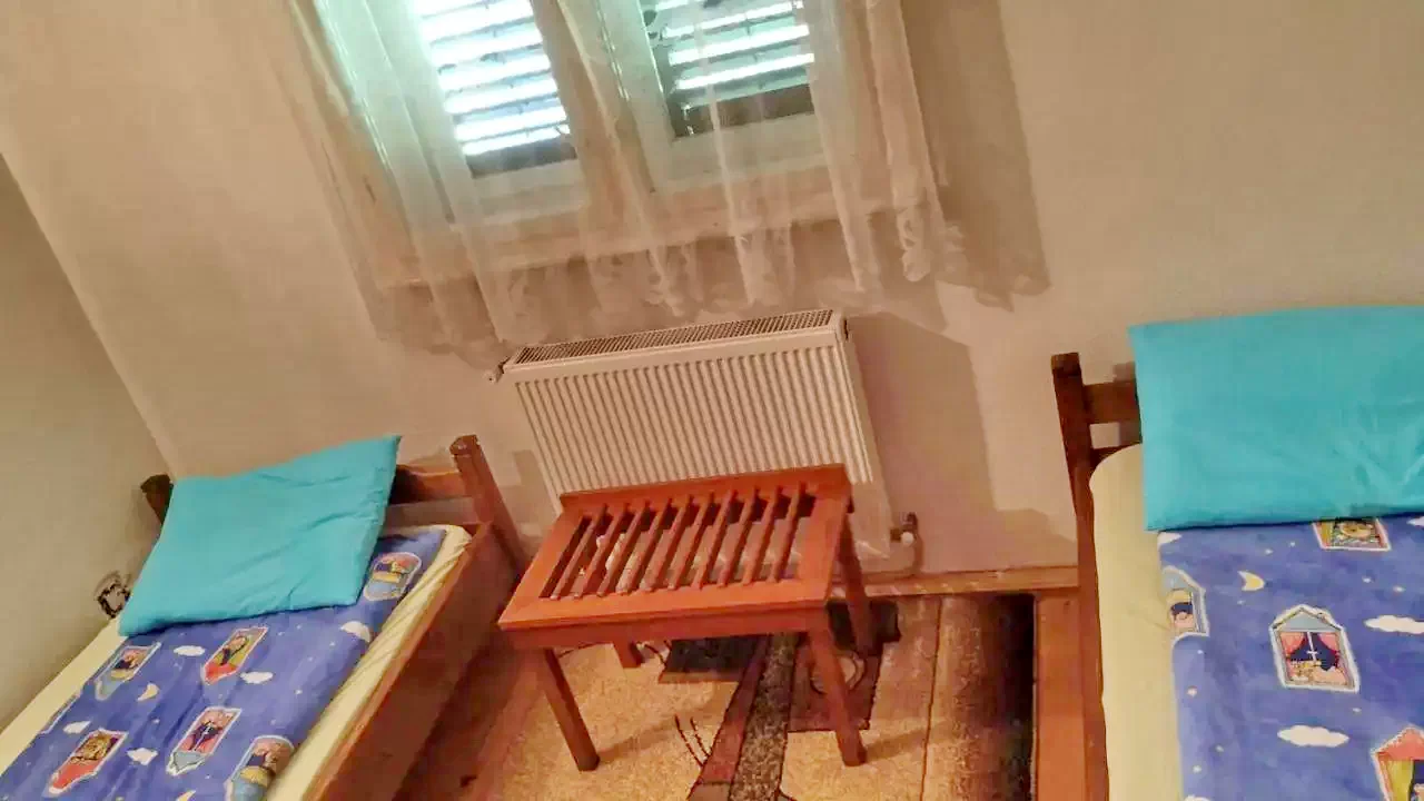 - 1 számú szoba: 1 db. kétszemélyes ágy és 1 szimpla ágy