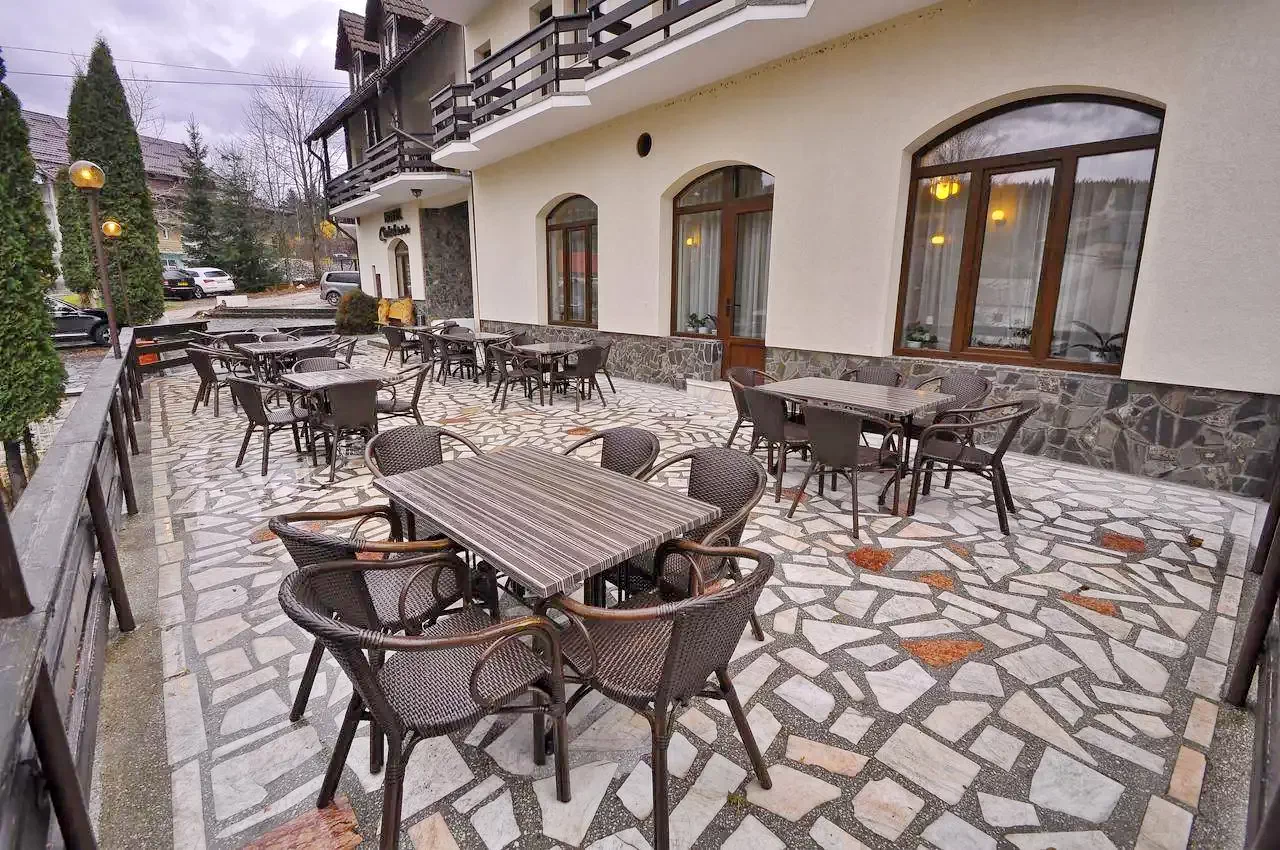 Szállás Borsa Hotel*** | Panoráma a környező hegyek-re, 880m magasan, 80 fős vendéglő, WI-fi, bár, terasz, filagória, kert, gratar | 50m sípálya és széklift felvonó Borsafüred, 4km Lóhavasi Vizesés, 8km Iezer-tó