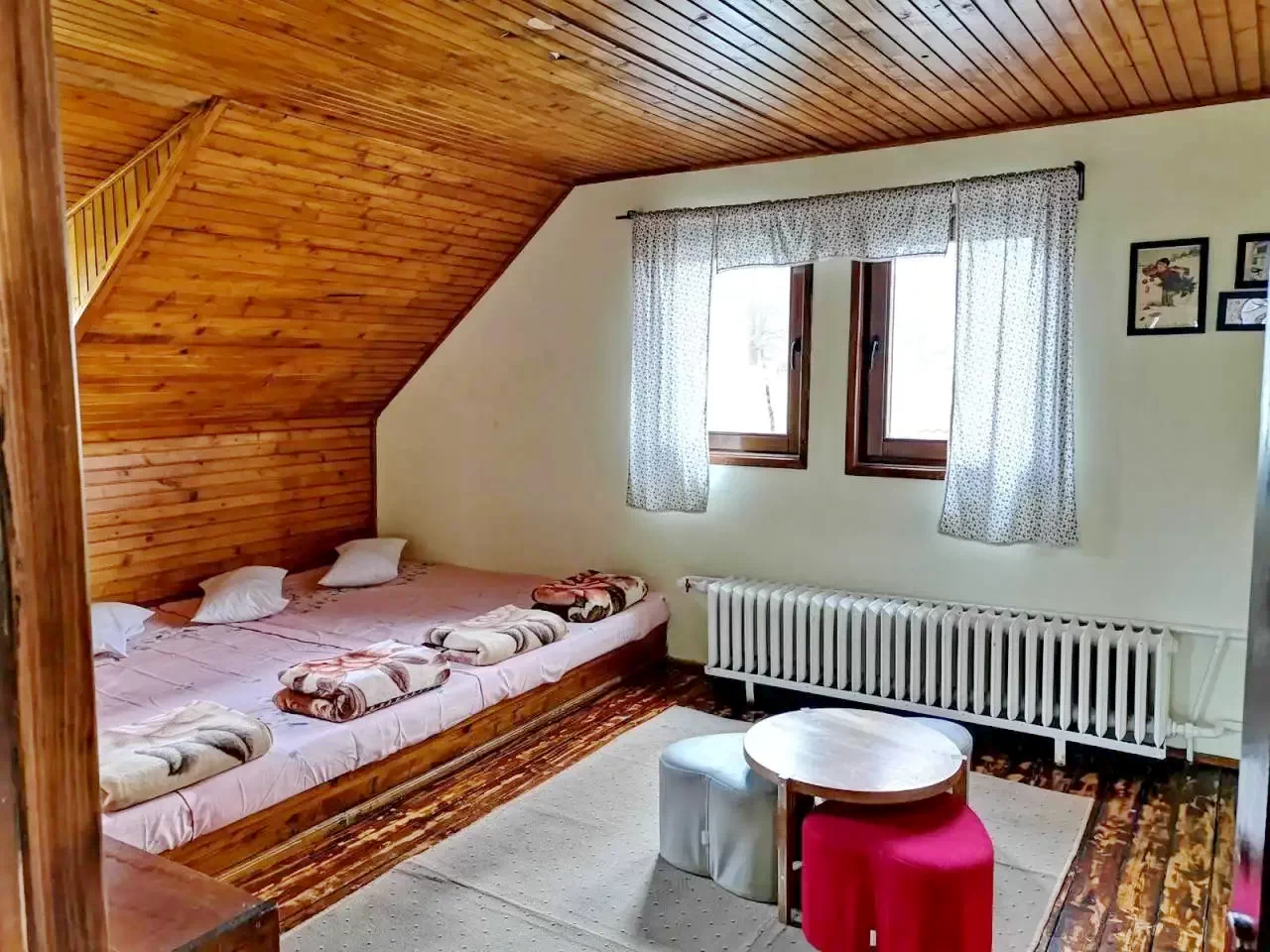 1 db 4 ágyas szoba (2 egyszemélyes ágy és egy emeletes ágy)