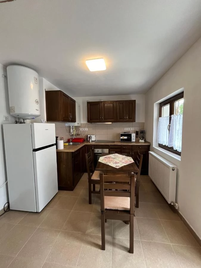 - A kis vendégházban egy jól felszerelt konyha található, amely lehetőséget biztosít a vendégek számára, hogy saját ételeiket elkészítsék.