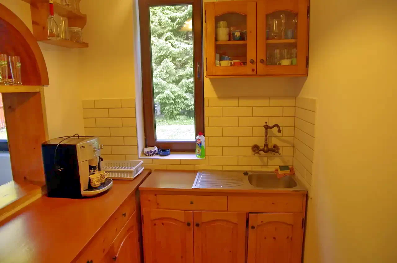 Jól felszerelt konyha áll a turisták rendelkezésére (A főzés aragáz kályhán történik)