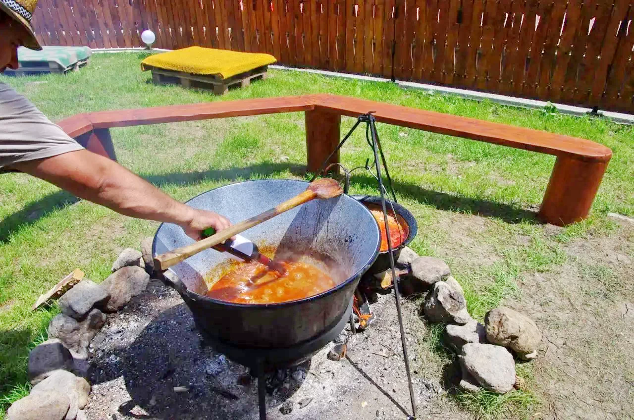 Kinti tűzhelyek (bográcsos, flekkensütő, grillező), fedett asztalok és padok várják a kikapcsoloódni vágyókat