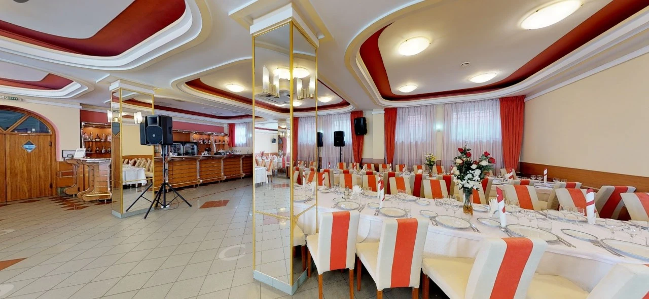 - Az üzleti ütekezetekhez és rendezvényekhez két, egyenként 150 fő befogadására alkalmas konferenciaterem áll rendelkezésre az Étterem területén.