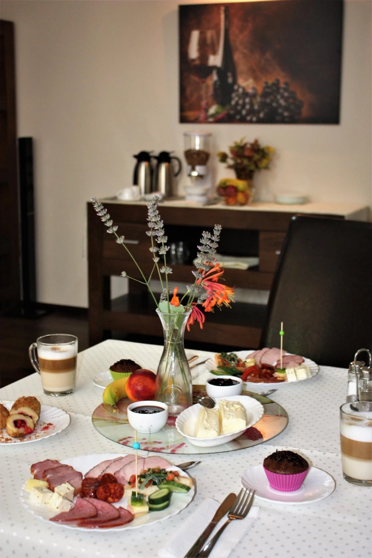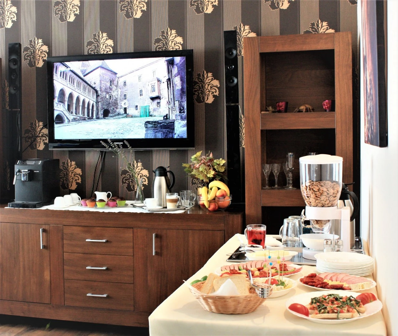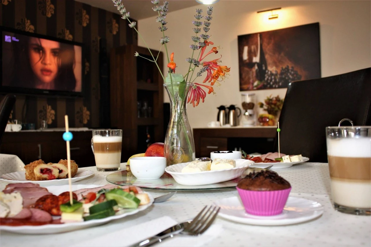 - A panzió egy tágas étkezővel rendelkezik, ahol a vendégek nyugodt környezetben fogyaszthatják el reggelijüket.