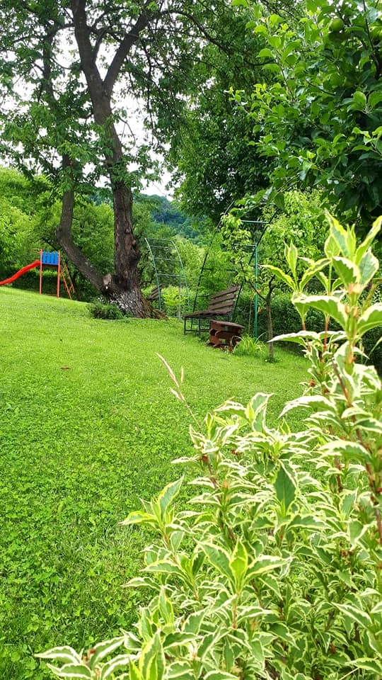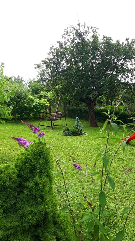 A vendégek a gondozott parkosított szép kertben pihenhetnek, amely dísznövényekkel, gyümölcsfákkal, hintával, padokkal és fedett terasszal (filagóriával) van ellátva.