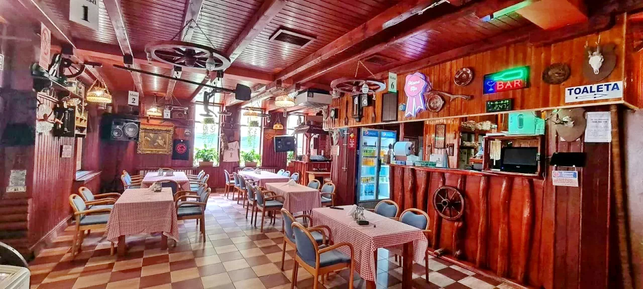 "A la carte" ételeket kínál vendégeinek az Erdélyi Szigethegység zónára jellemző rusztikus étteremében, illetve annak 2 födött 22 férőhelyes teraszán Az étterem szívesen fogad 45-60 fős szervezett csoportokat kedvezményes árfekvésű félpanziós ellátással.