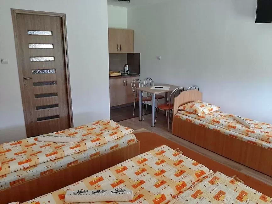 - 2 nagyobb apartman ( 22 nm) : apartmanonként 2 egyszemélyes ágy és 1 kétszemélyes ágy , egy konyhasarok asztallal és székkel és egy fürdőszoba