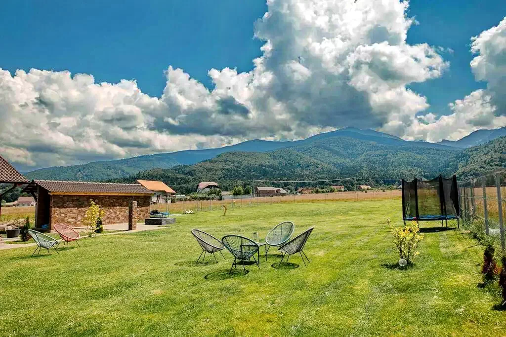 Szállás Brassó Felsőszombatfalva Üdülőtelep Panzió**** | Kilátással a Fogaras hegységre, nappali, kert, filagória, bogrács, grill, játszótér, parkoló | 300 m Motul Dragusului Sípálya, 27 km Fogaras, 60 km Balea-tó