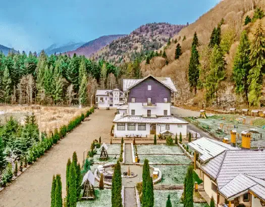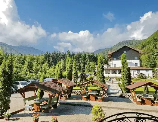 Az üdülőtelepen erdő mellett tisztáson található, a Brancoveanu kolostor közelében, csendes és hangulatos környezetben.
