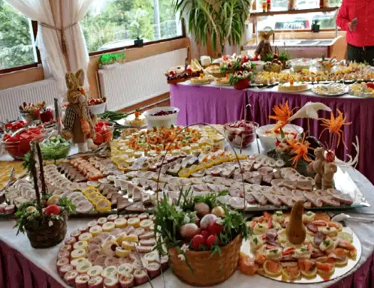 Ünnepi ebéd – válogatott ételekkel, desszertekkel és italokkal