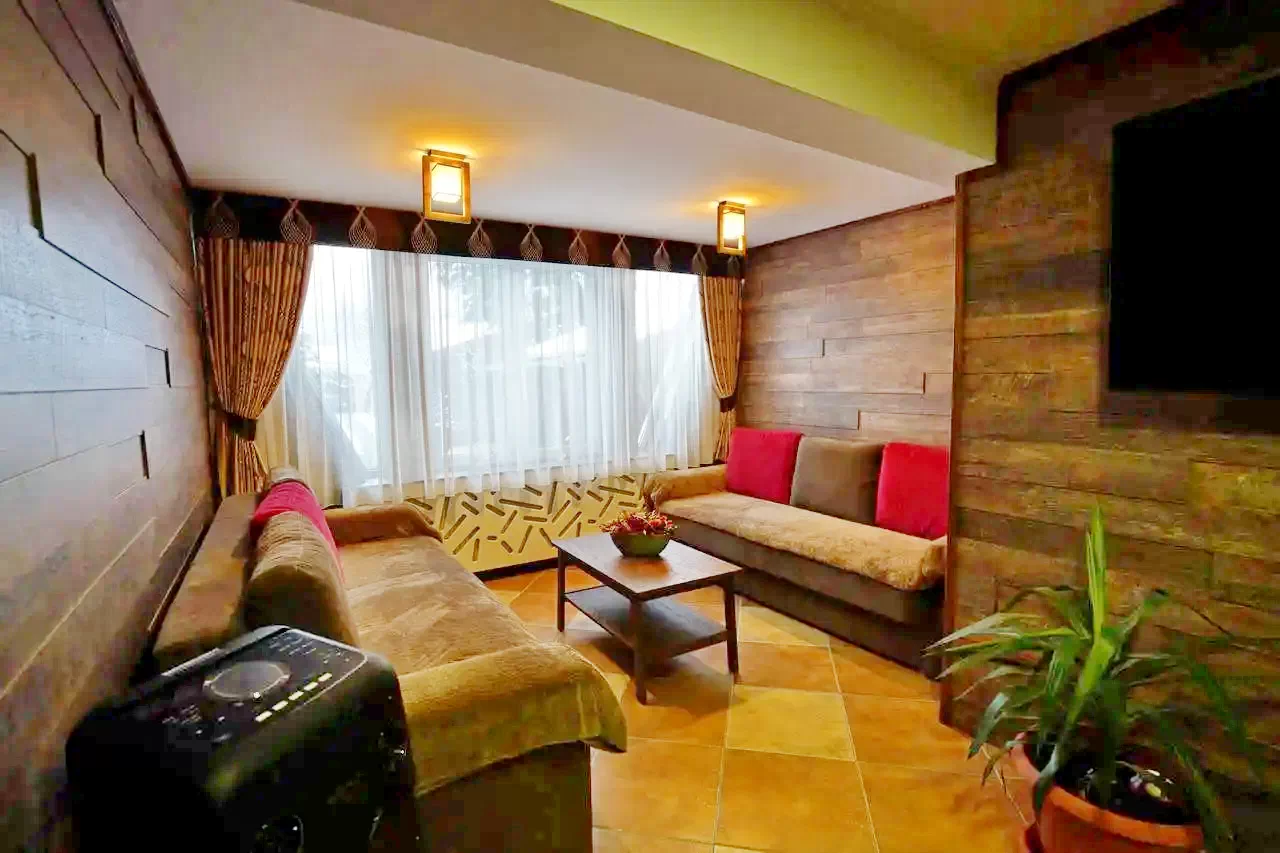 - Tágas nappali két kanapéval, asztallal és kis bárral.