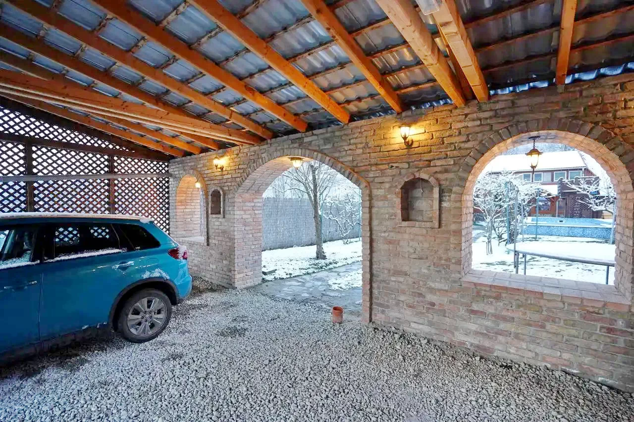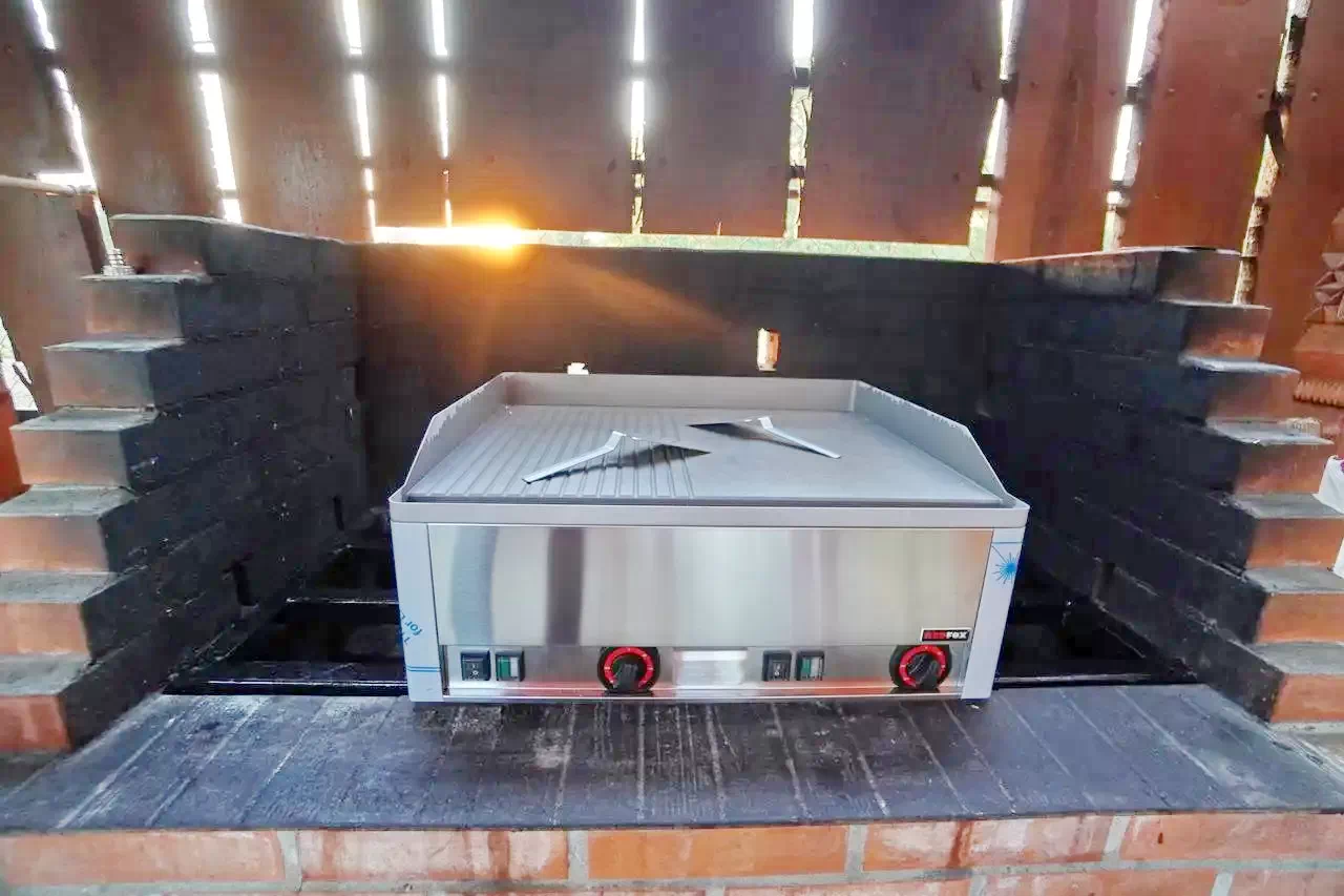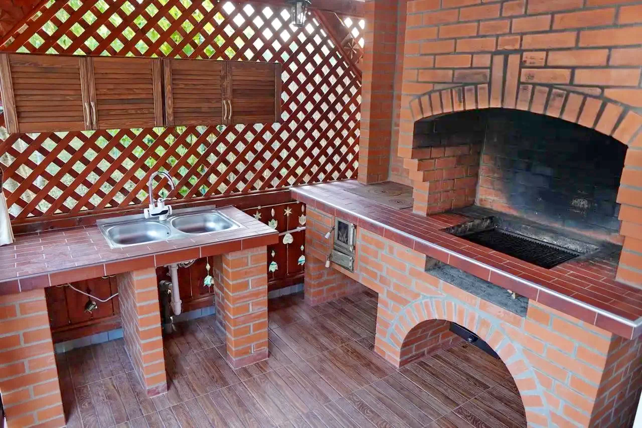 - Fedett terasz kemencével és elektromos grill "Master Chef" felszereléssel, amely ideális a grillezéshez.