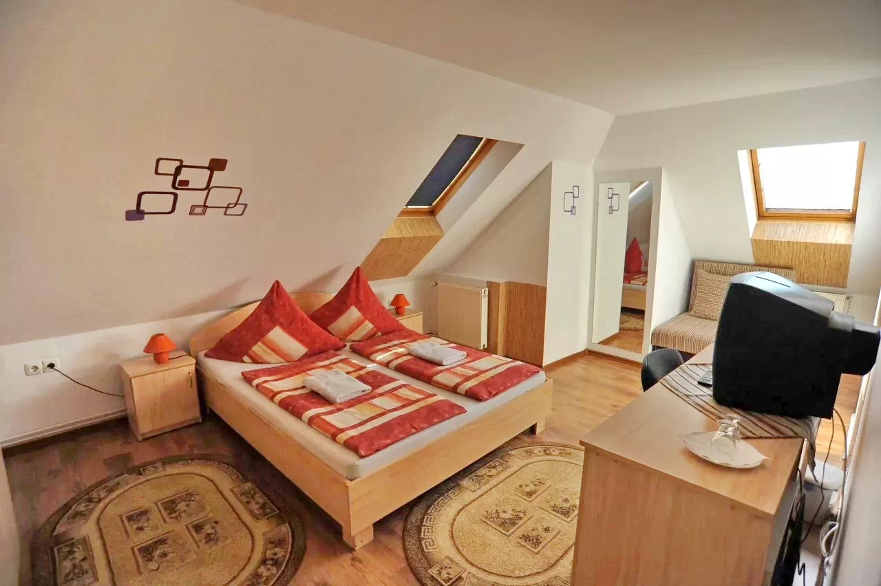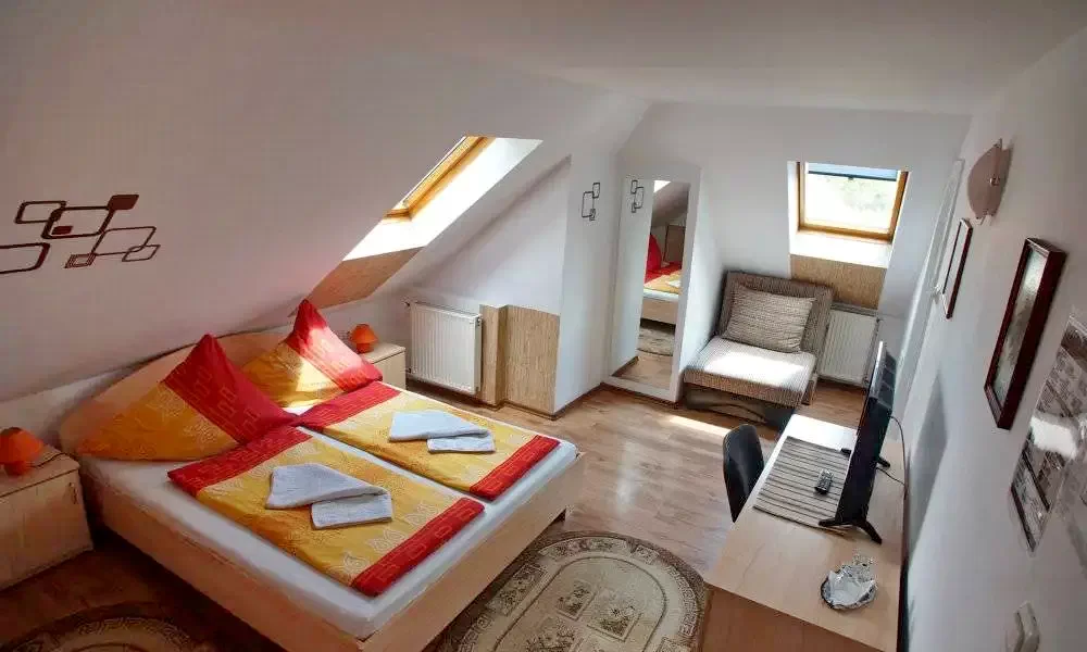 - 1 szobában francia+egyszemélyes ágy, fürdőkád