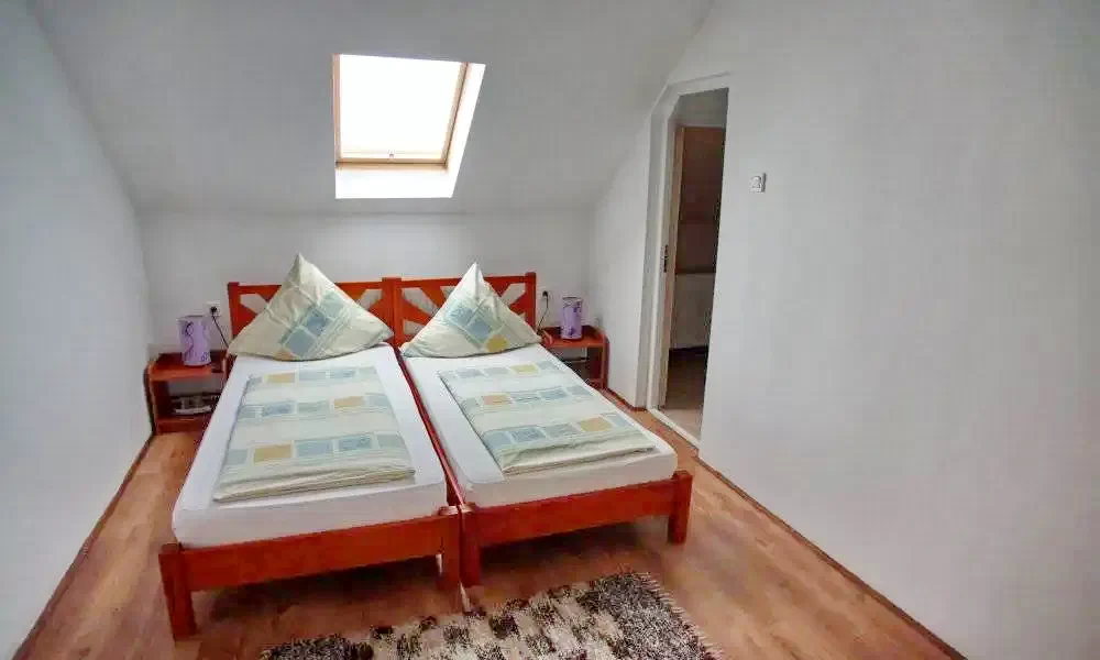- 2 szobában 3 db egyszemélyes ágy - 2 db 4 fős szoba (1 franciaágy, 2 db egyszemélyes ágy)