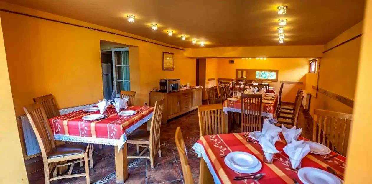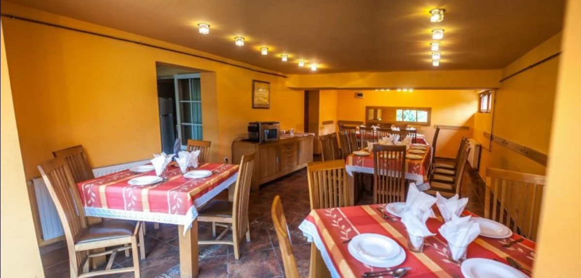 - Ezen kívül egy 40 m²-es étkező áll rendelkezésre, ahol közösen étkezhetnek, illetve közös programokon vehetnek részt a vendégek.