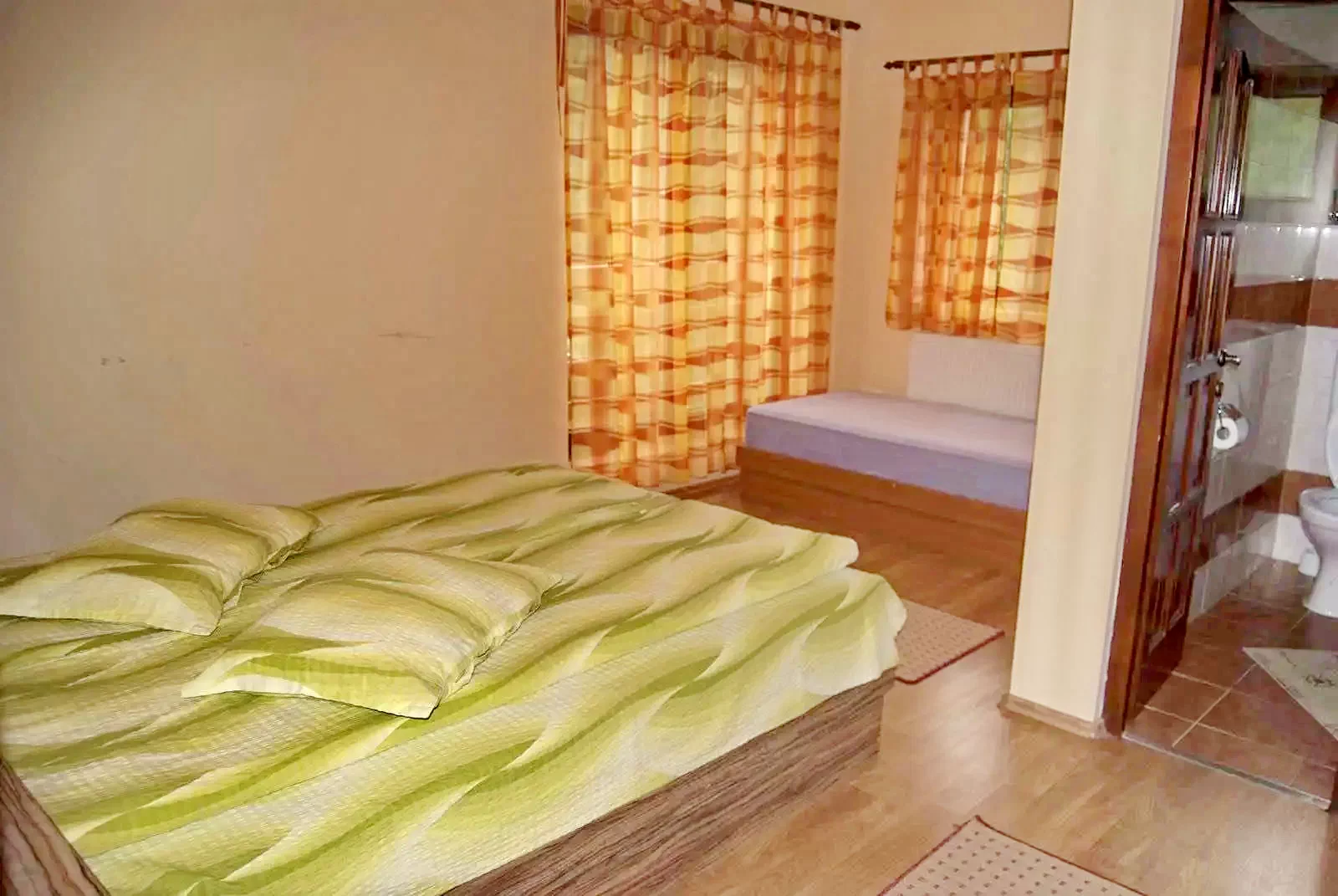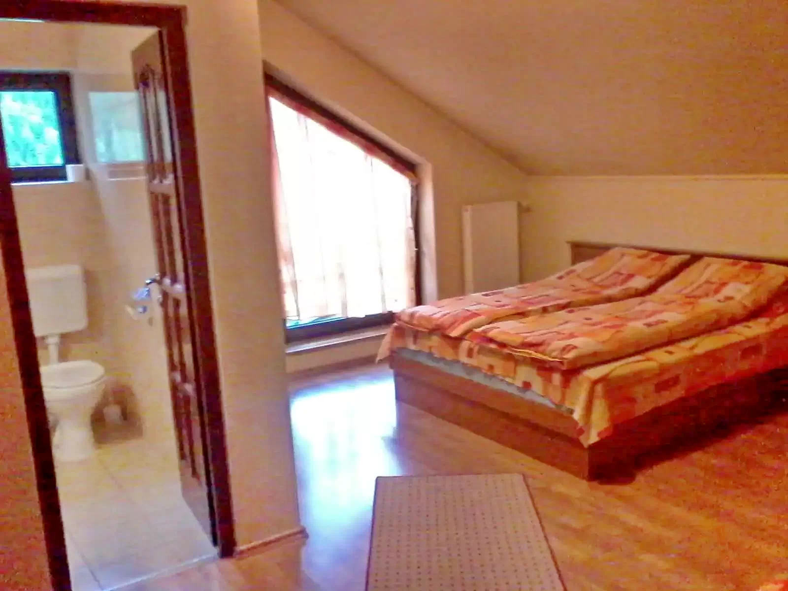 2 szoba: 1 franciaágy, közös fürdőszobás sarok-káddal