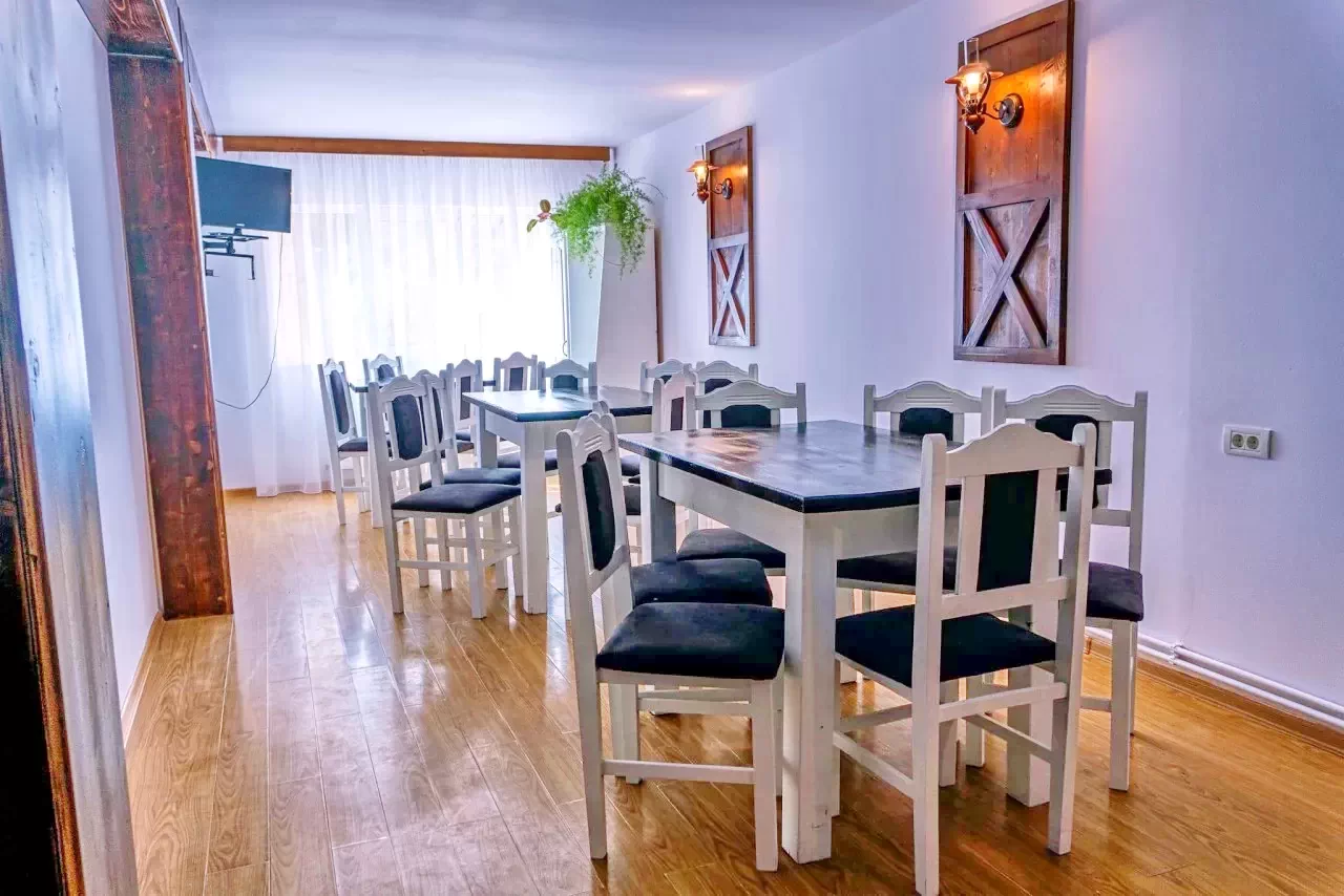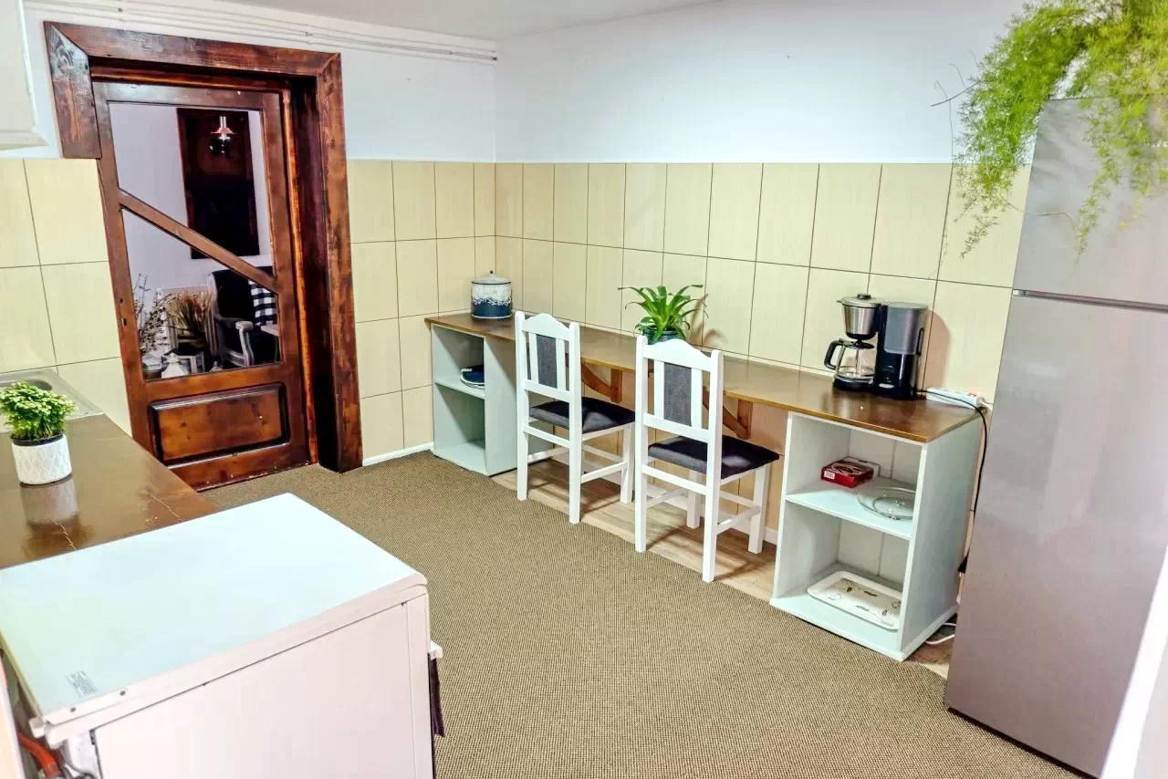 A panzió minden kedves vendége rendlkezésére bocsátja a felszerelt konyhát ahonnan egy tágas étkezőbe érkezünk.