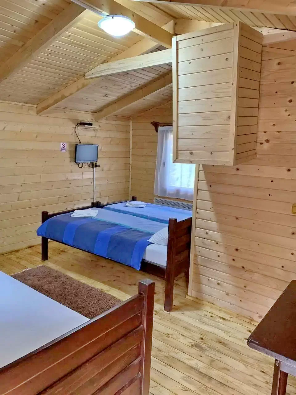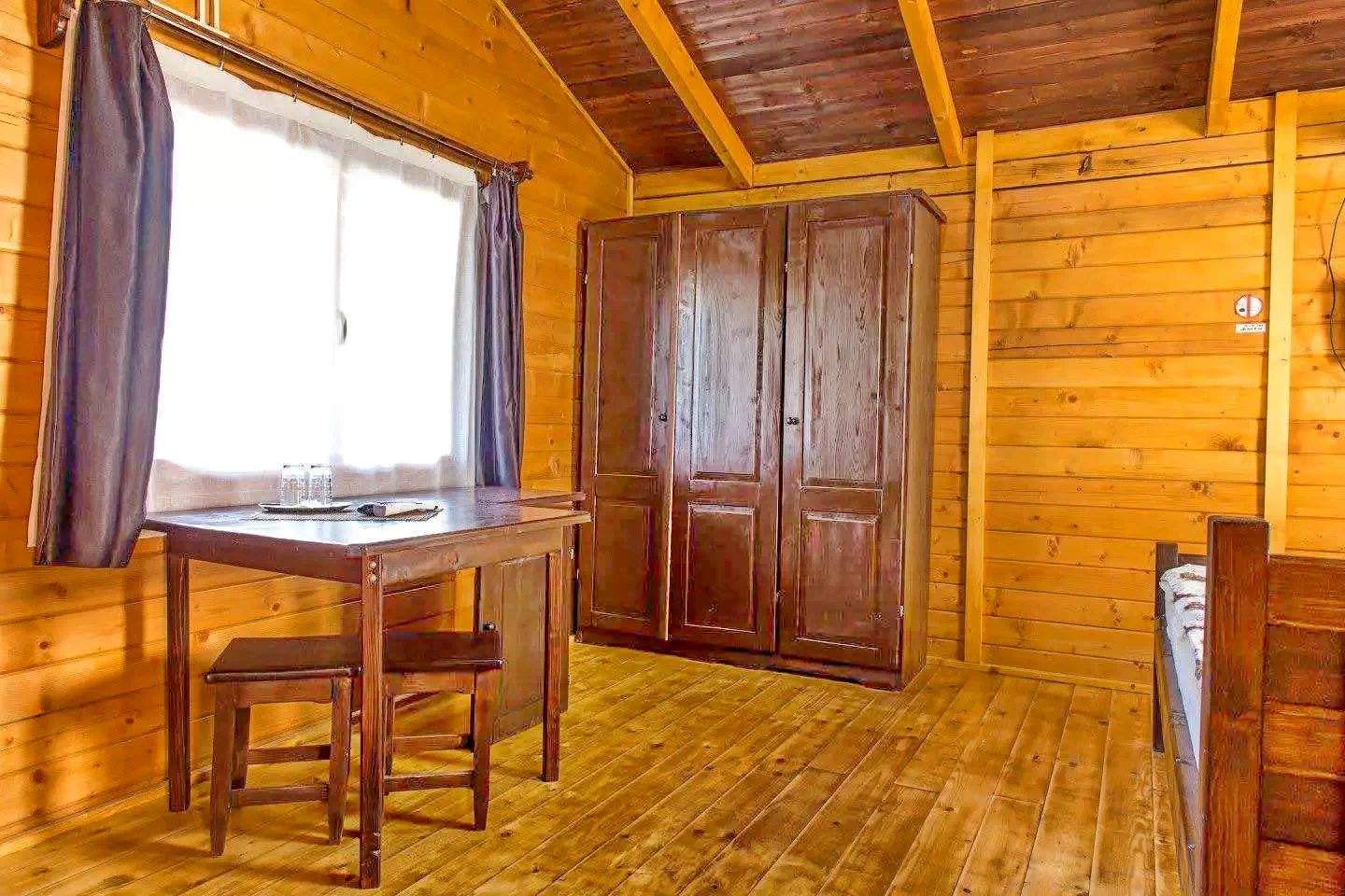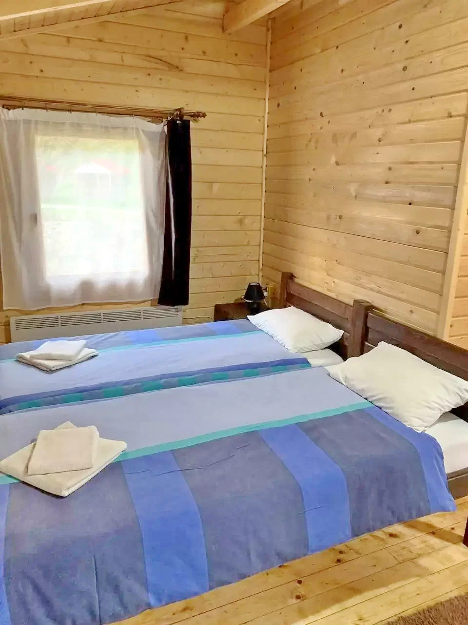 - 1., 2., 3., 4., 5. számú faházak: mindegyikben 1 franciaágy (2 fő) + pótágy (1 fő)