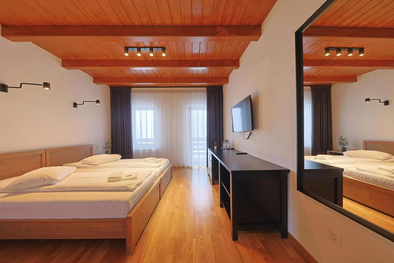 - A szobák kényelmes ágyakkal, modern felszereltséggel és privát fürdőszobával rendelkeznek. Néhány szoba terasszal is kiegészül, ahonnan gyönyörű kilátás nyílik a Hargitafürdő tóra és a környező hegyekre.
