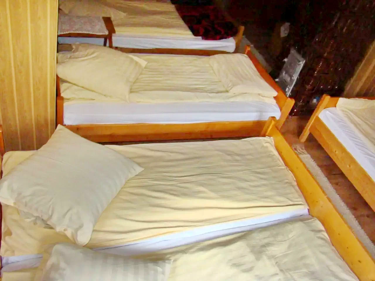 - Emelet: 3 kétágyas szoba, 1 egyágyas szoba, 1 háromágyas szoba, 1 szoba 3 kétszemélyes ággyal és 4 pótággyal.