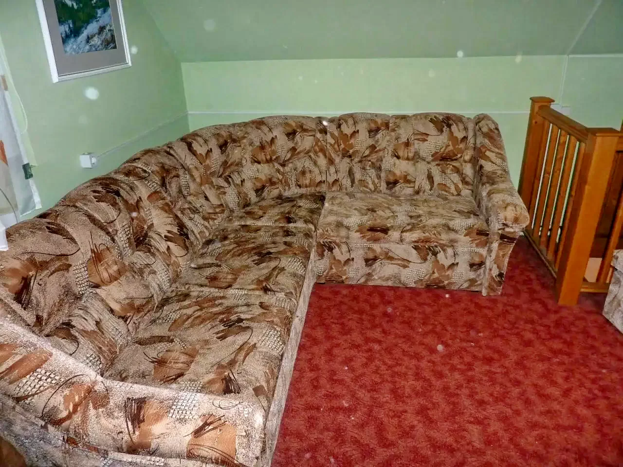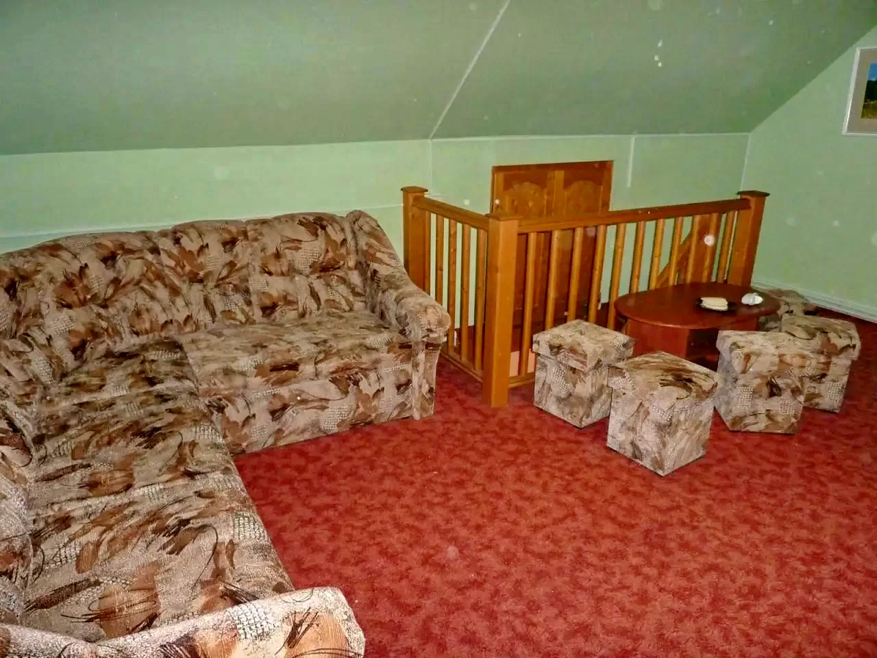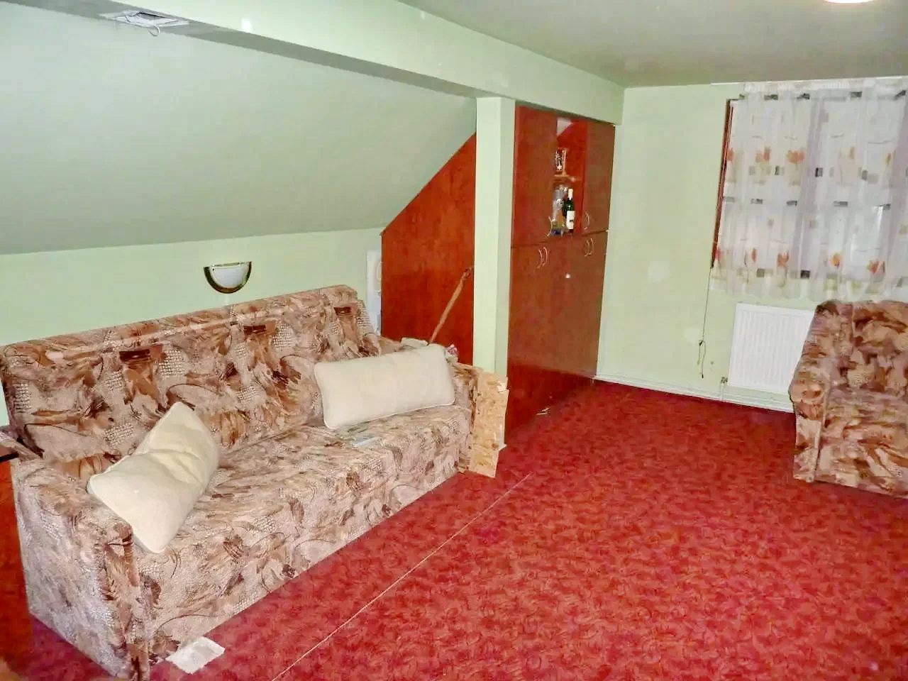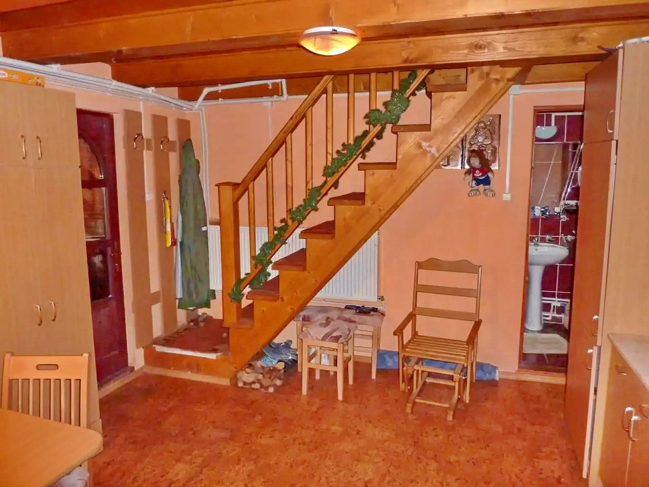 Az emeleten található egy szoba, melyben két db. kihúzható, kétszemélyes ágy található. (Összesen 4 fő!)