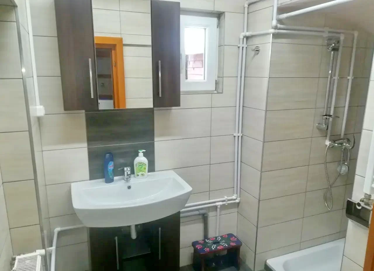 Fürdő: zuhanyzó + vízöblítős WC + kézmosókagyló