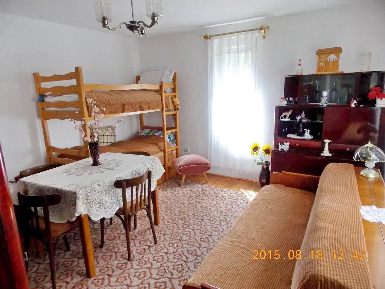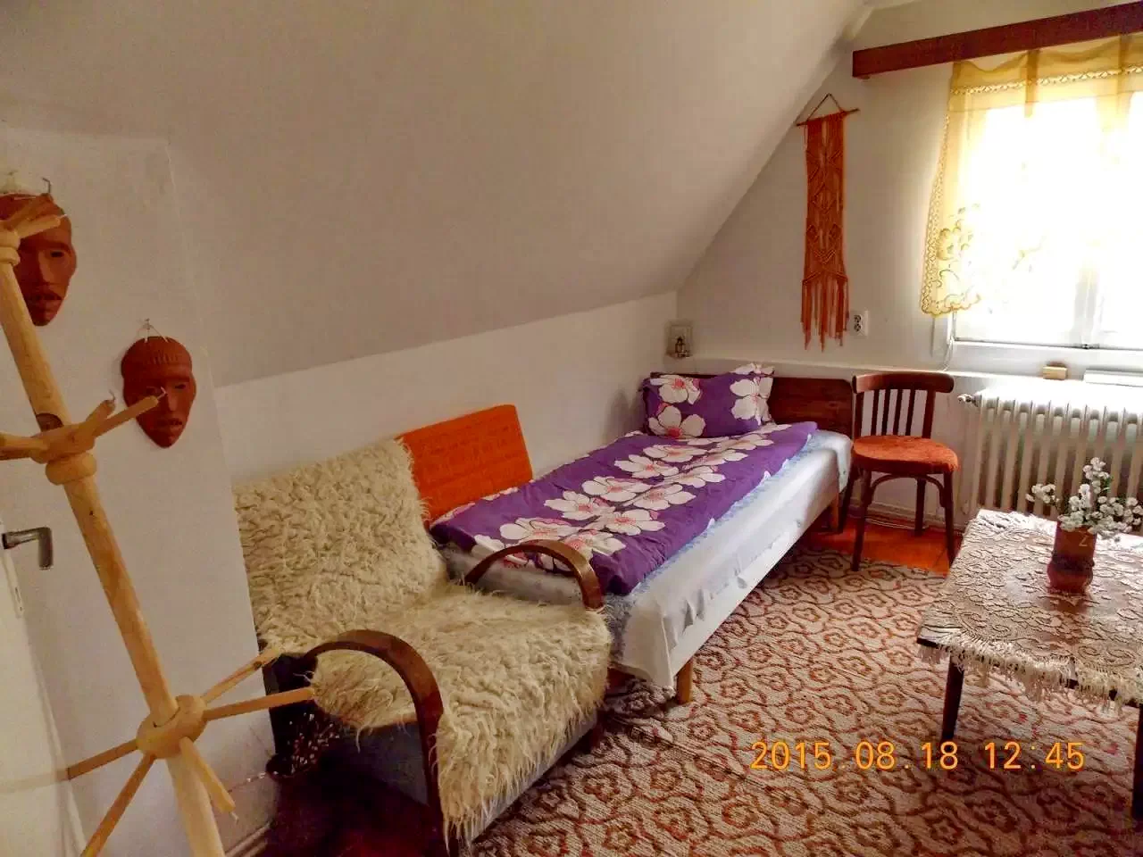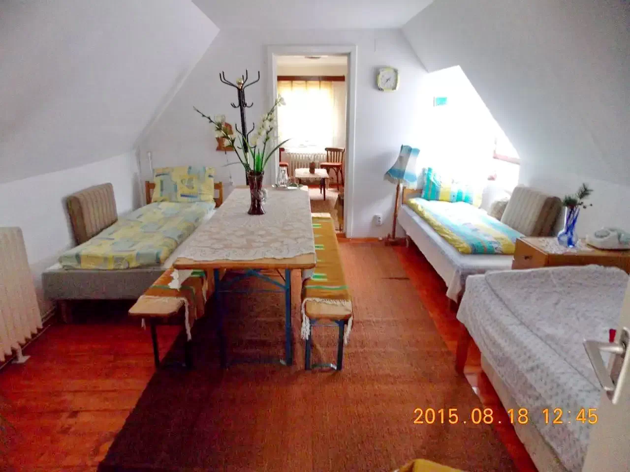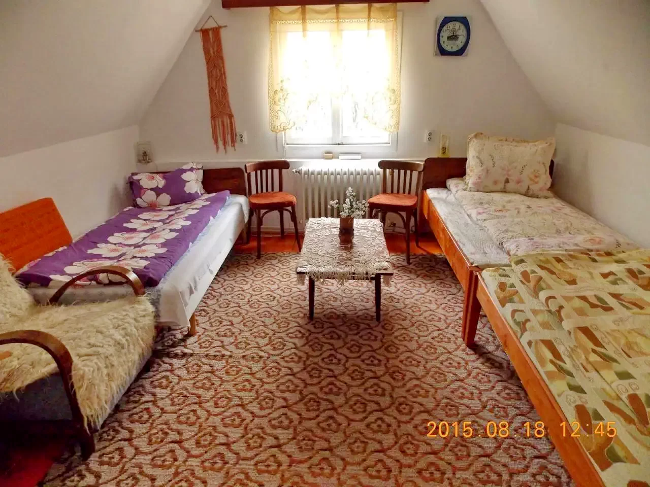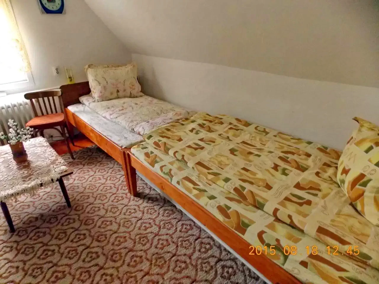 - Első szoba: 1 franciaágy és 2 egyszemélyes ágy (6 fő számára).