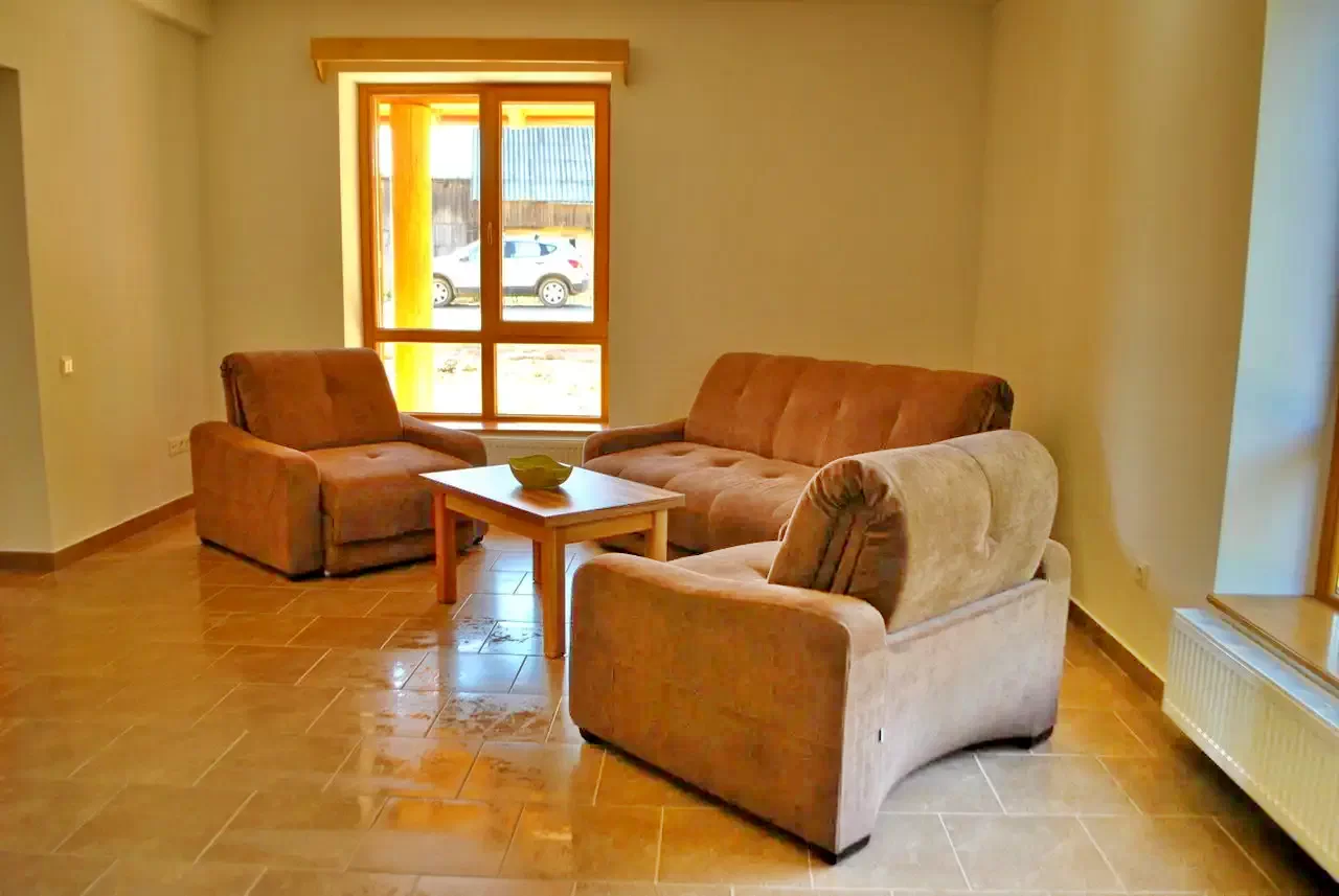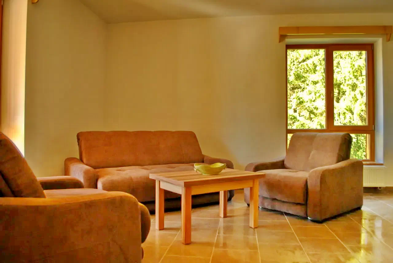 Nappali 20 m2, benne 1 db 2 fős kihúzható kanapé és 2 db 1 fős kihúzható fotel