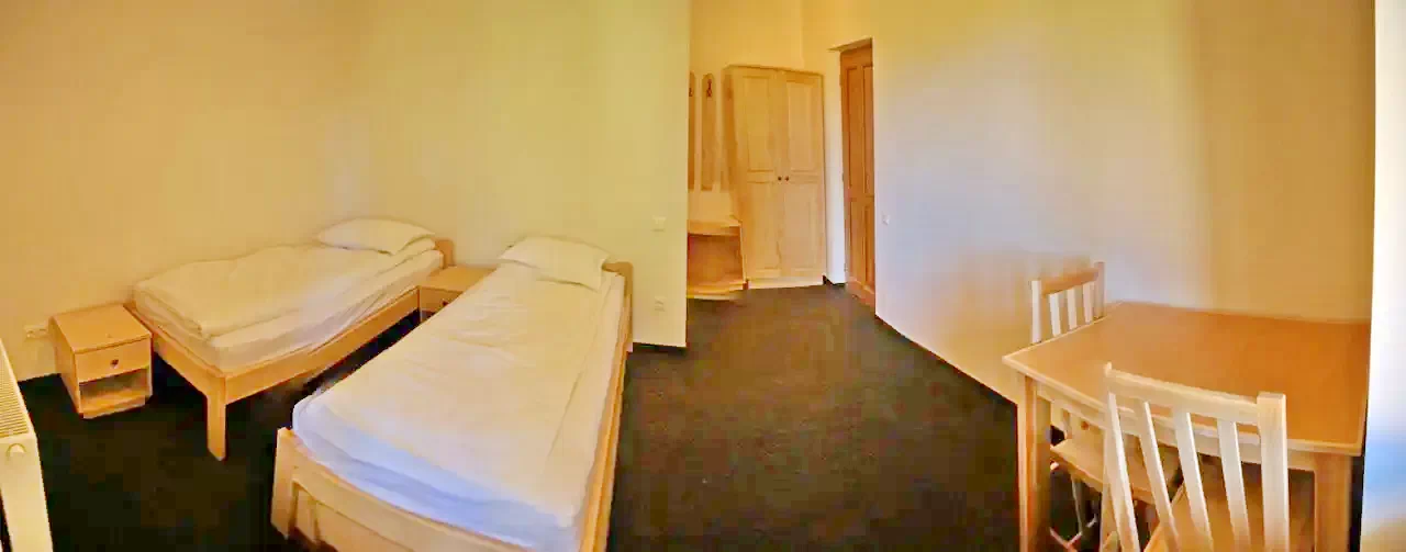 2 db 2 fős szoba: 2 db egyszemélyes ágy és egy pótágy, kis terasz (ez a szoba 2-3 személyes).