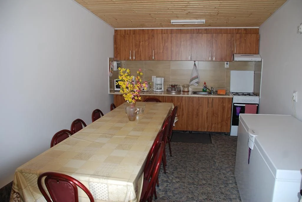 Felszerelt konyhát, 50 férőhelyes étkezőt - társalgót biztosít vendégeinek.