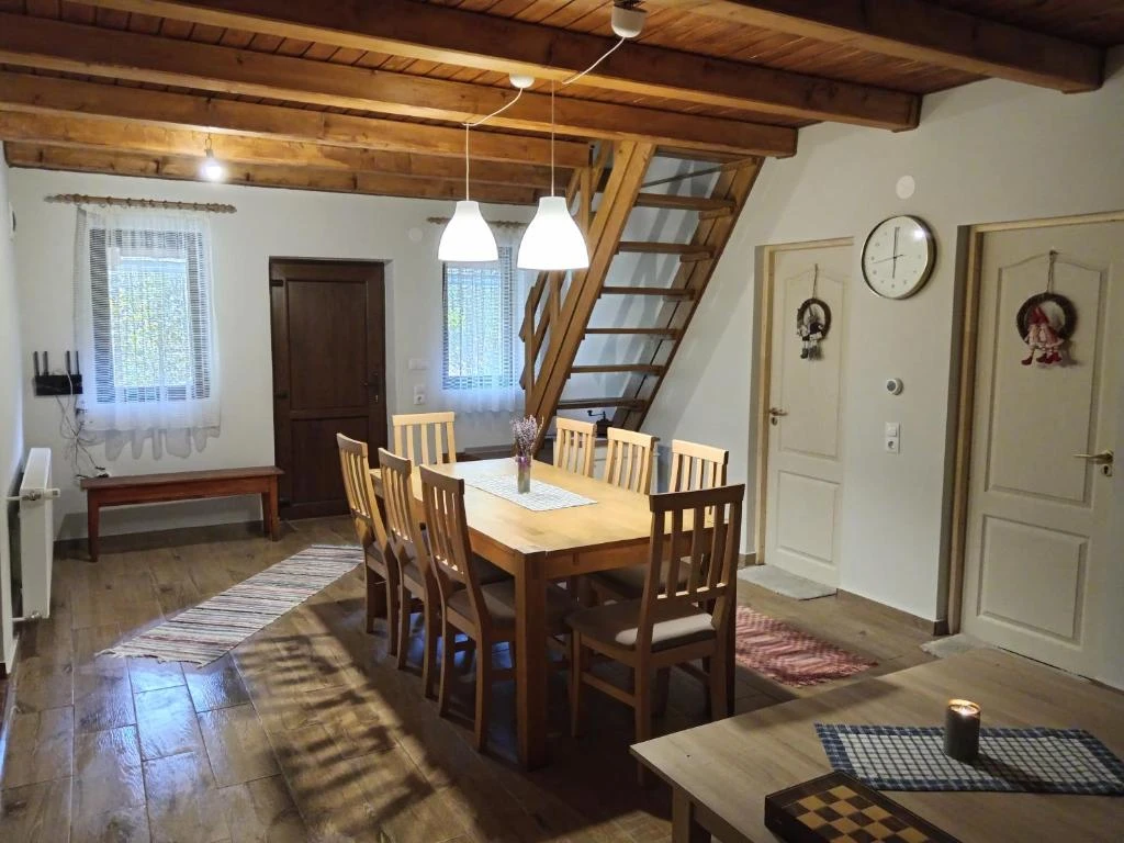 A vendégház egy 12 fős, teljes egészében bérelhető erdei faház, amely ideális családok, baráti társaságok és kisebb csoportok számára. A ház közvetlenül a patakparton helyezkedik el, erdei panorámával, hegyi és kerti kilátással.