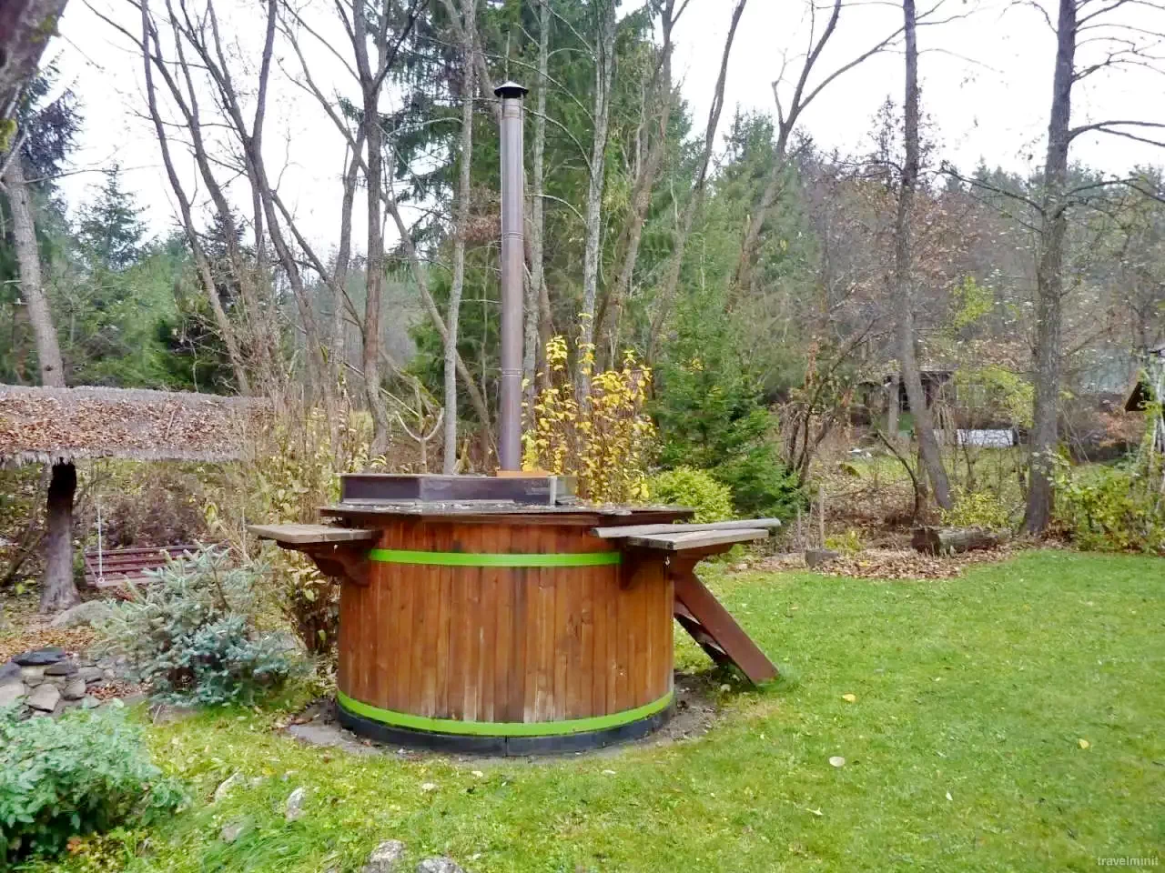 - A szomszédos telken egész évben használható fűthető vizesdézsa (székely jakuzzi, 2 m átmérőjű, 120 cm mély, 3500 literes) várja a vendégeket, 6-8 fő számára kínálva wellness-élményt.