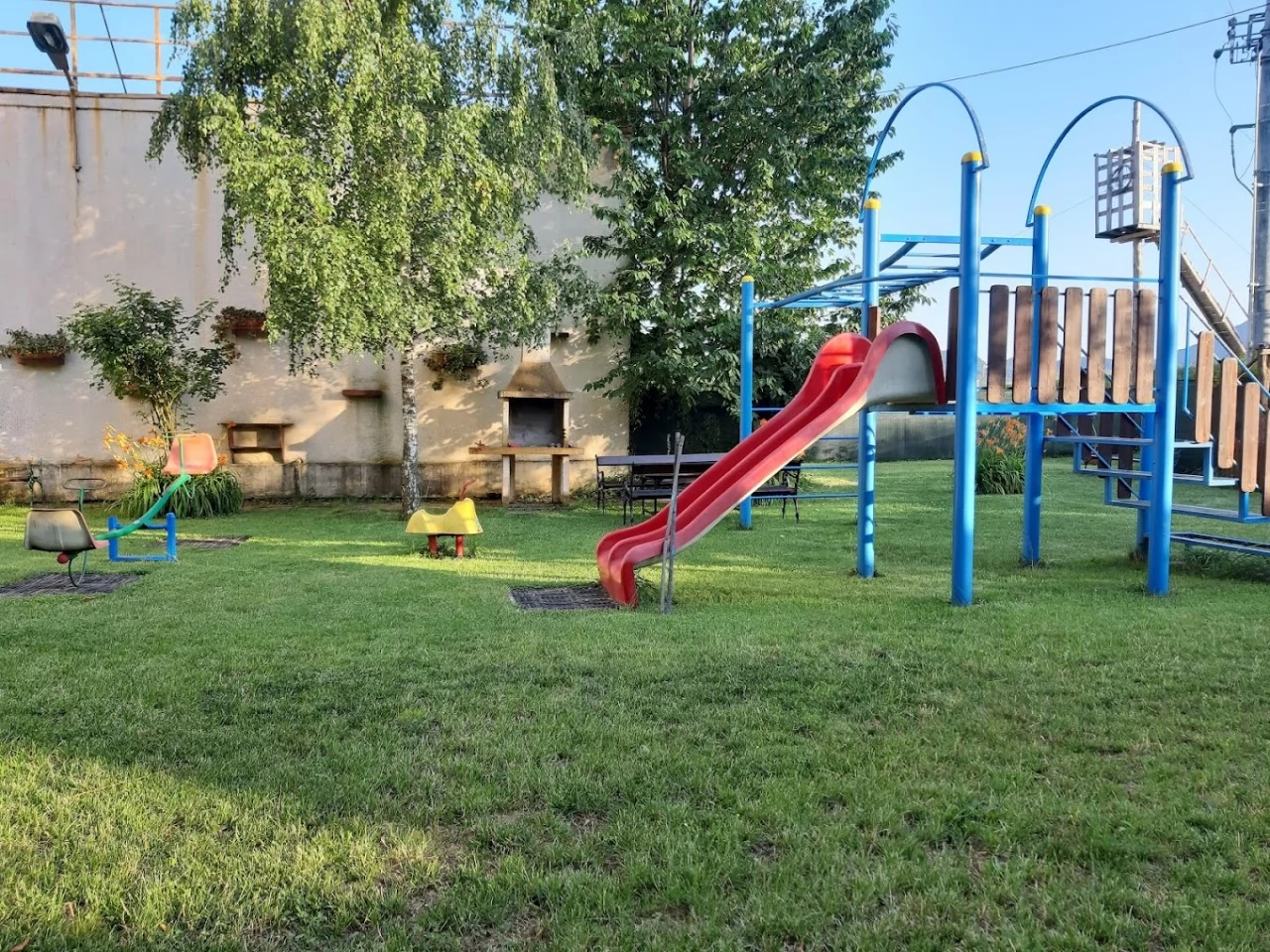 - Van egy játszótér a gyerekeknek és egy filagória.