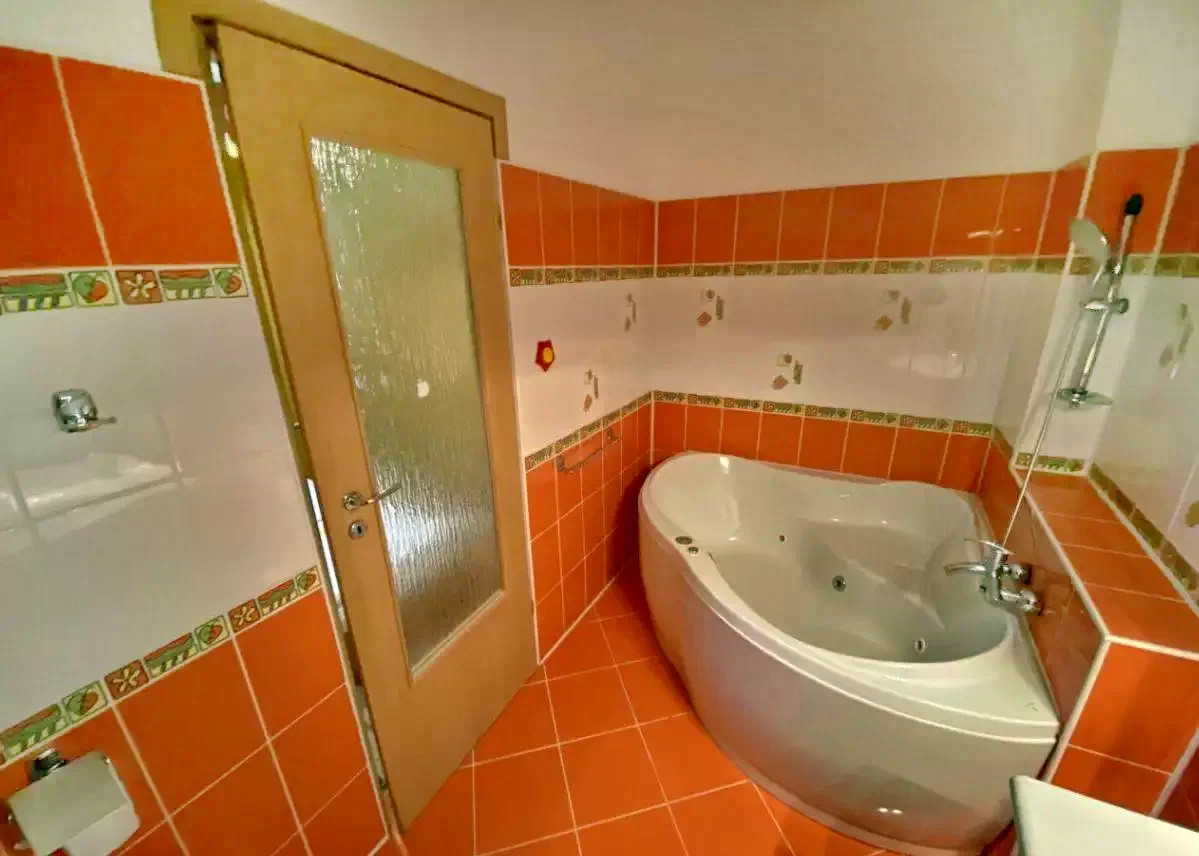 - Az előtérből van a feljárat az első emeletre, ahol 1 db kétágyas szoba és 2 db. 4 személyes tágas apartman található, mindenik saját fürdőszobával.