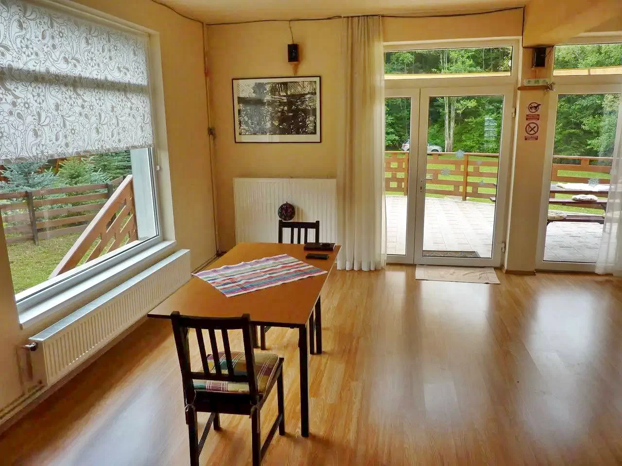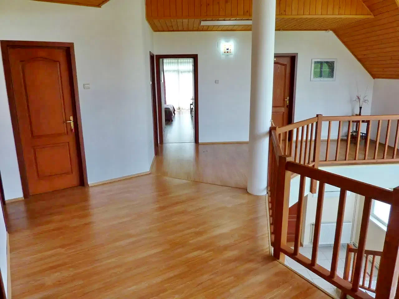 - A ház rugalmasan bérelhető: az egész kulcsosház, csak a földszint (közösségi terek + két szoba) vagy az emelet (közösségi terek + négy szoba) is foglalható.