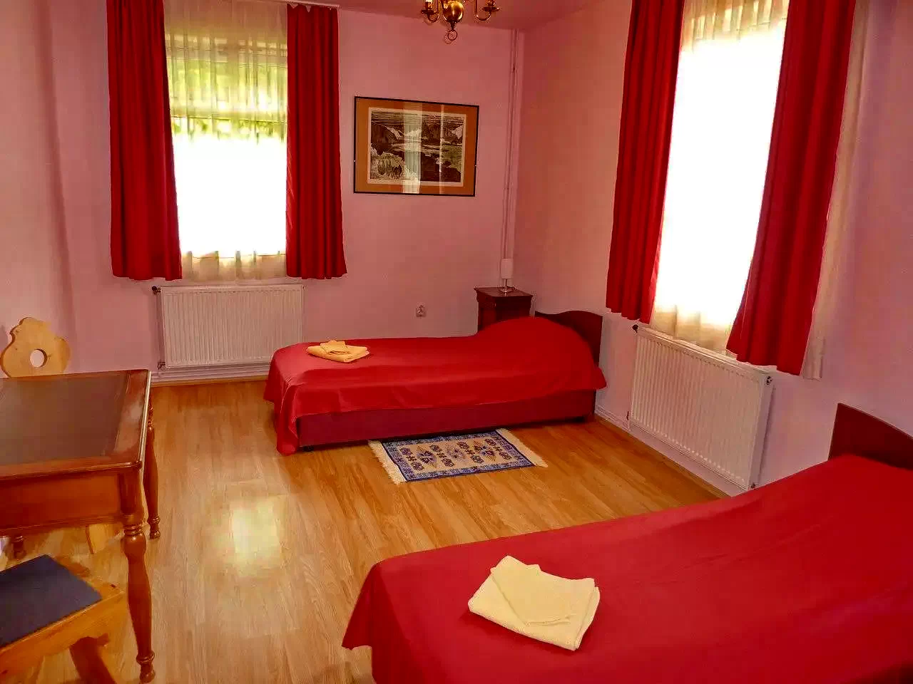 Kényelmi szolgáltatások: Ágynemű, vasaló, központi fűtés (téli időszakban is üzemel).