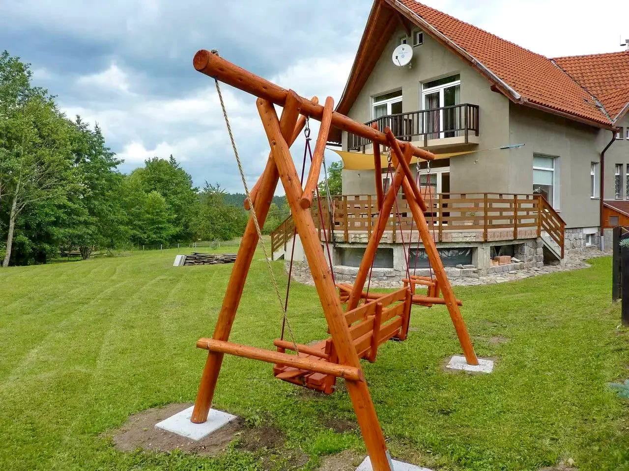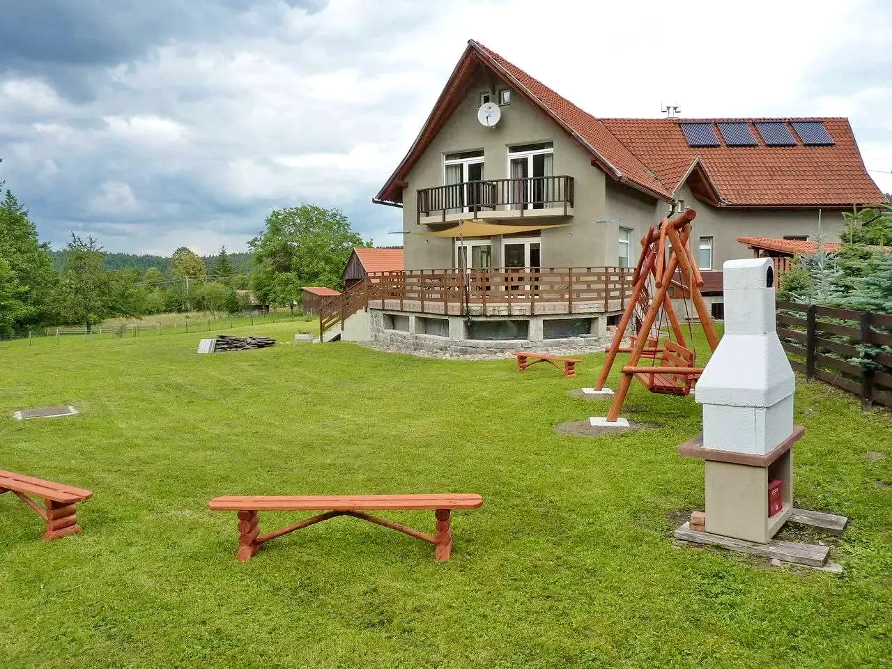 - Az udvaron napozóágyak, hinta, pingpongasztal és kerti kiülő is található.