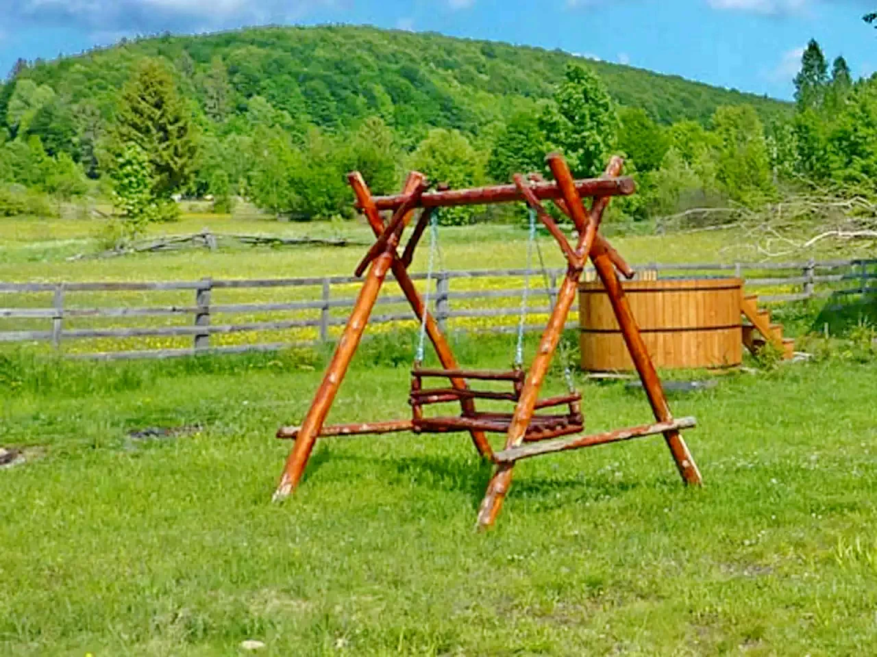 Szabadidős eszközök: Székely jakuzzi (fűthető vizes dézsa, 6–8 fő), flekkensütő kemence, kenyérsütő kemence, bogrács, tárcsalap, szabad tűzhely.