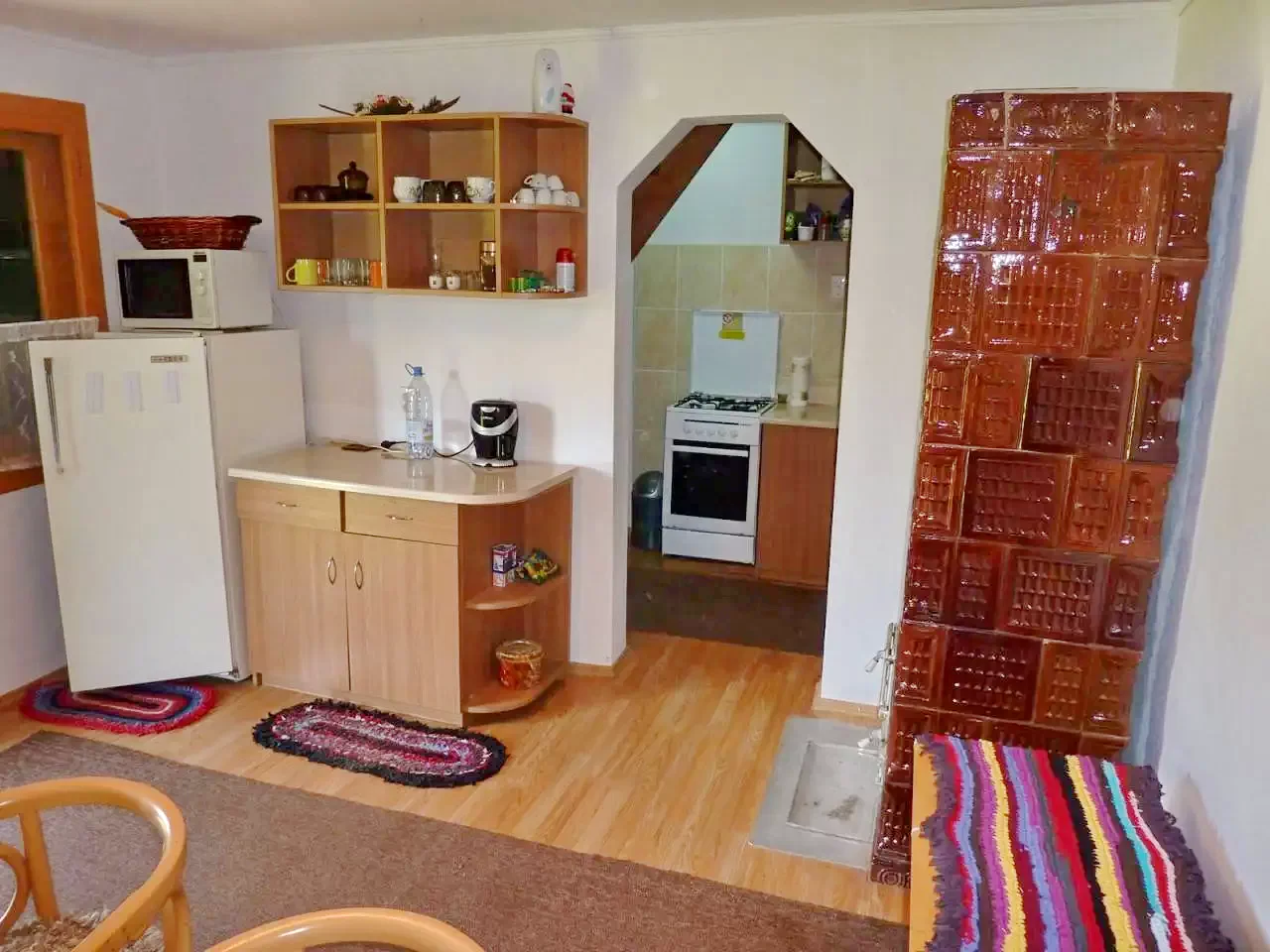 Fűtés és meleg víz: Cserépkályha, elektromos melegvíz-ellátás.
