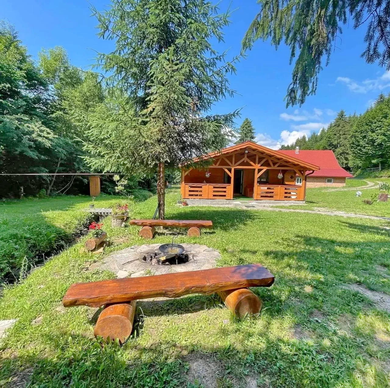 Szállás Ivó Kulcsosház | Erdőszélen patak mellett, tisztáson, cseber, WIFI, konyha, nappali kandallóval, konyha, terasz, udvar, kerti kiülő, kemence, grill, hinta, homokozó, parkoló | 8 km Zetelaki víztározó, 10 km Madarasi Hargita sípálya, 2 km Vadasp
