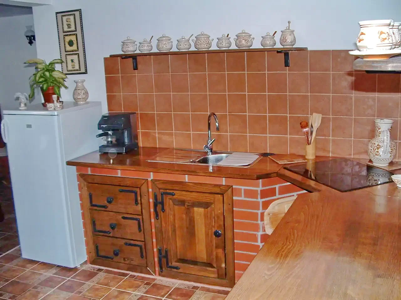 - A kulcsosház modern, felszerelt konyhája villanytűzhellyel, hűtőszekrénnyel, kávéfőzővel, valamint edényekkel és evőeszközökkel ideális az önellátó étkezésekhez.