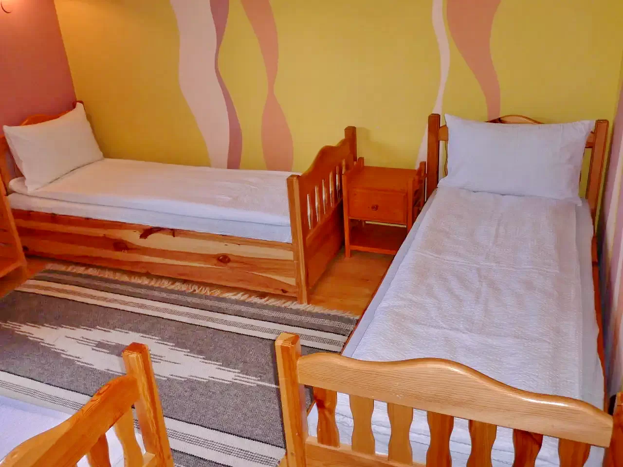 - Az első és második szobában két-két egyszemélyes ágy található.